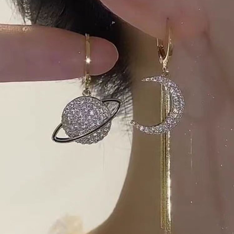 非対称星の月のイヤリングの気質の長いタイプのフリンジの銀の針のピアスの高級感のフランスの2024年の新型の潮