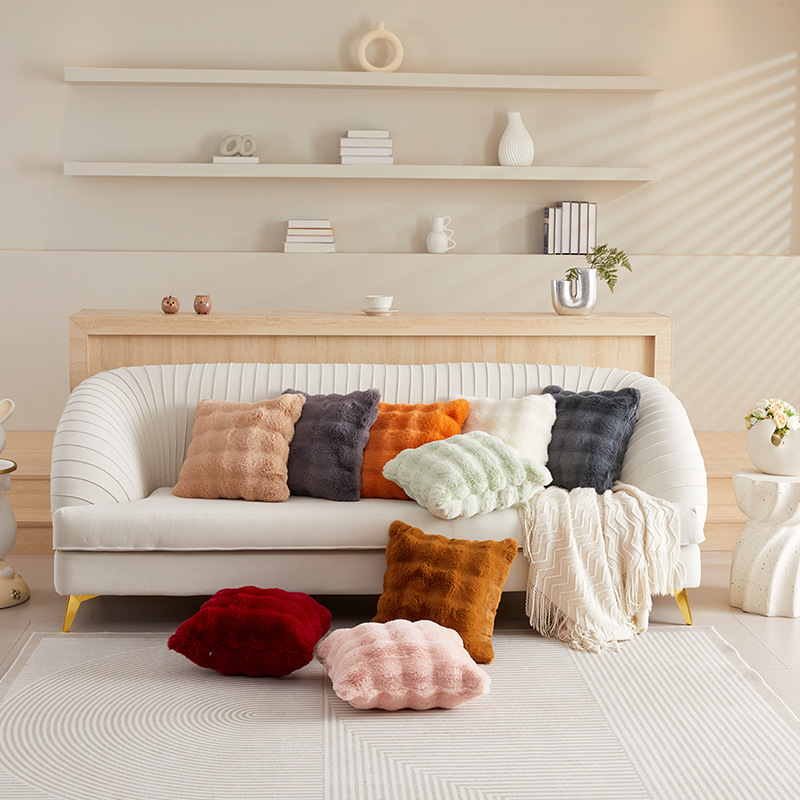 北欧風竹節模様のイミテーションラビットファー枕カバー、ins風シンプルソファ枕、寝室用正方形枕クッション