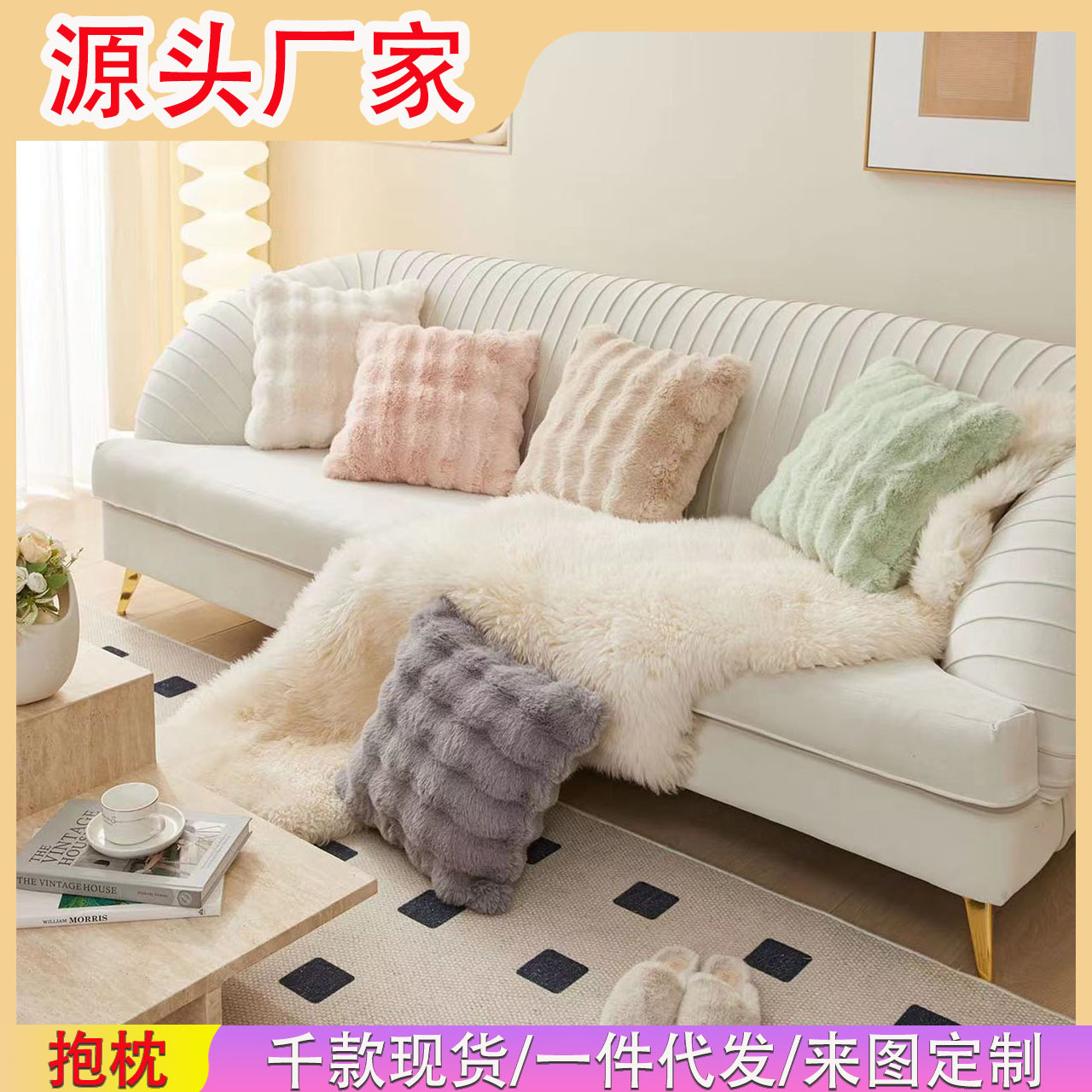 亚马逊热卖兔毛抱枕套拼接荷兰绒靠垫客厅沙发抱枕套床头靠垫批发