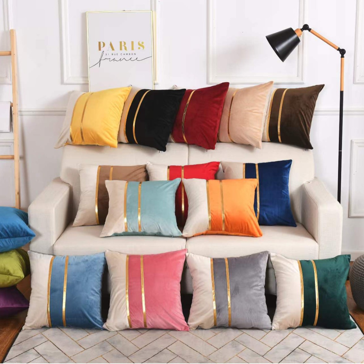クロスボーダーダブルゴールドラインオランダベルベットソファ枕カバークッション背もたれクッションライトラグジュアリー北欧風アマゾンライトラグジュアリー風