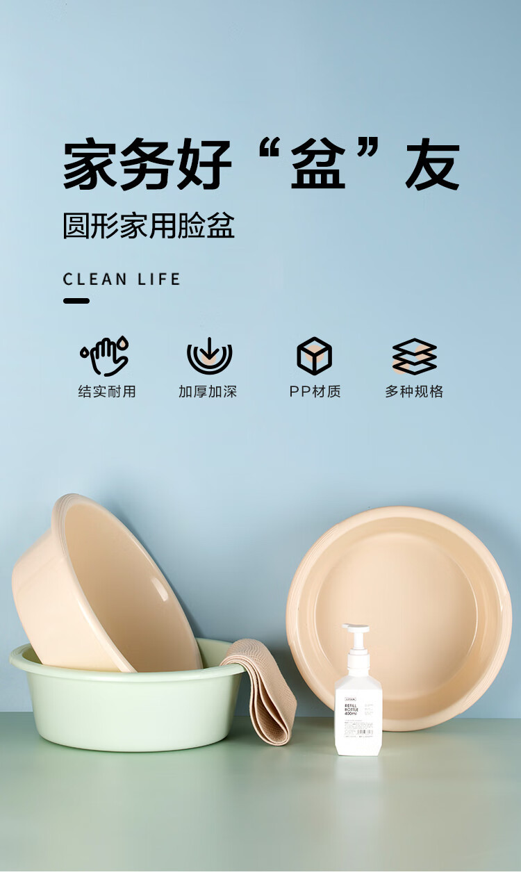 茶花银离子抗菌加厚脸盆塑料脚盆洗PP新生婴儿童大小脸盆洗菜盆