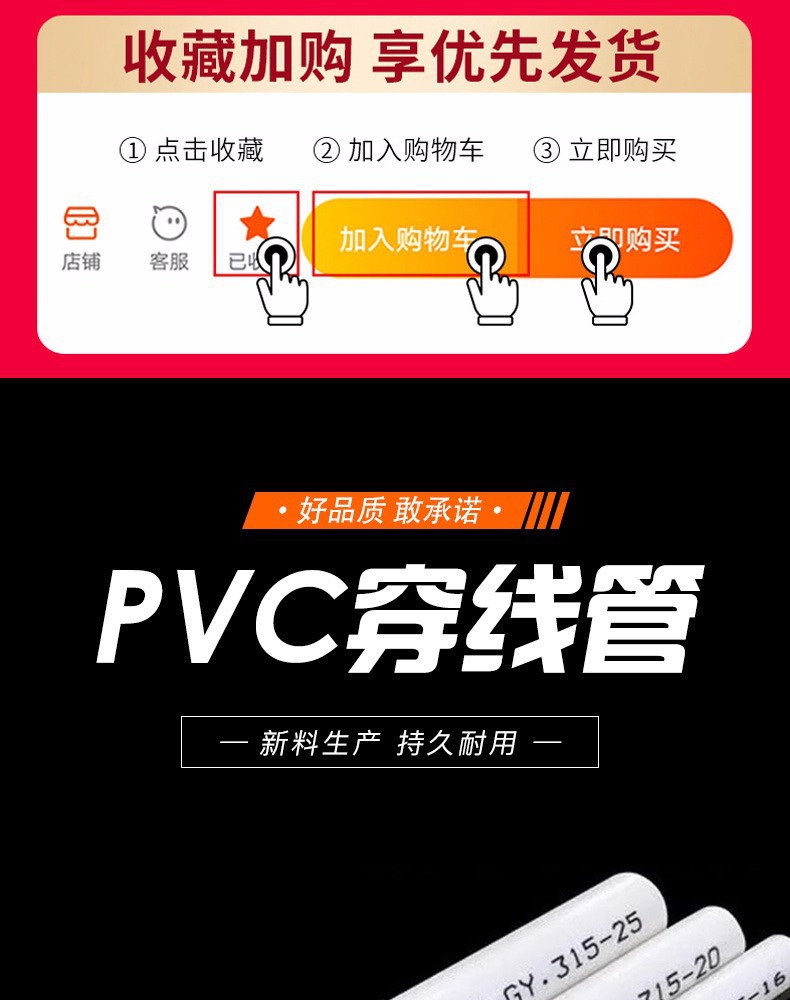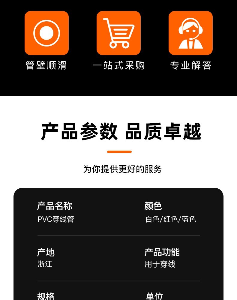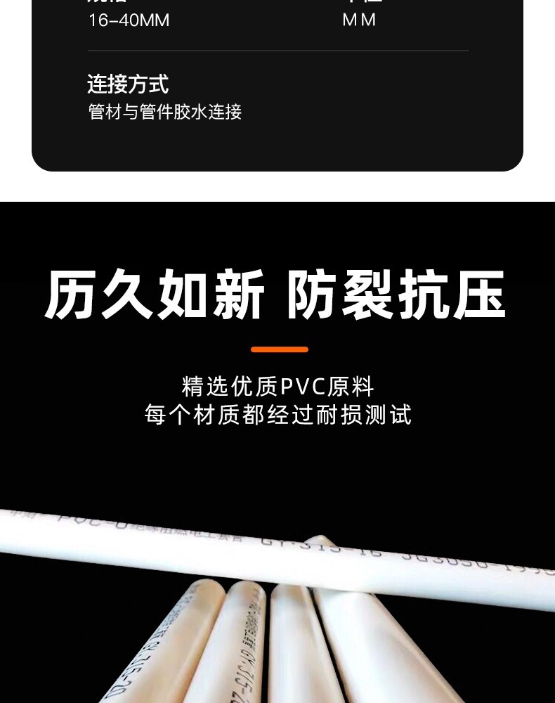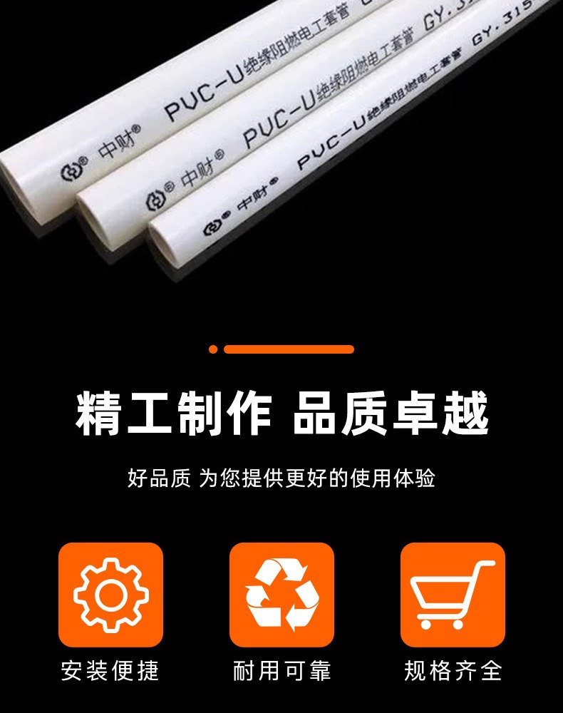 中財pvc電線管4分6分白色電線管家装電線管絶縁難燃過規格電線管