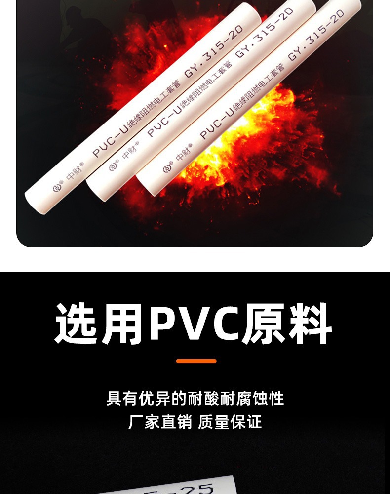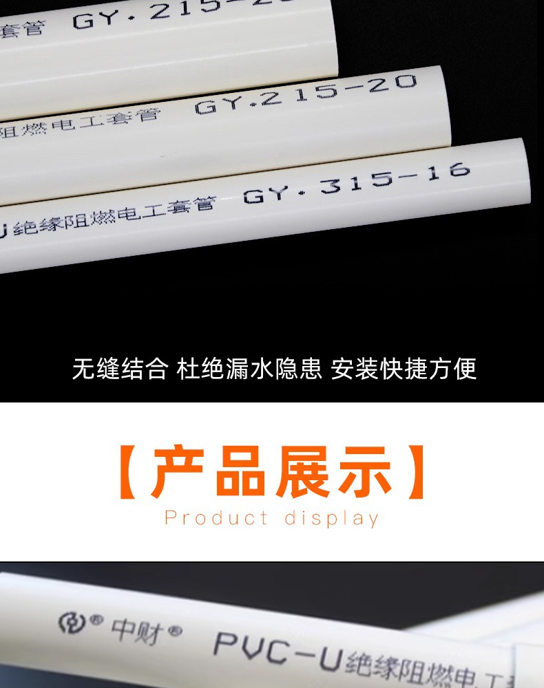 浙江中財配管pvc電線管軽量中型重電線管管絶縁難燃電気電線管