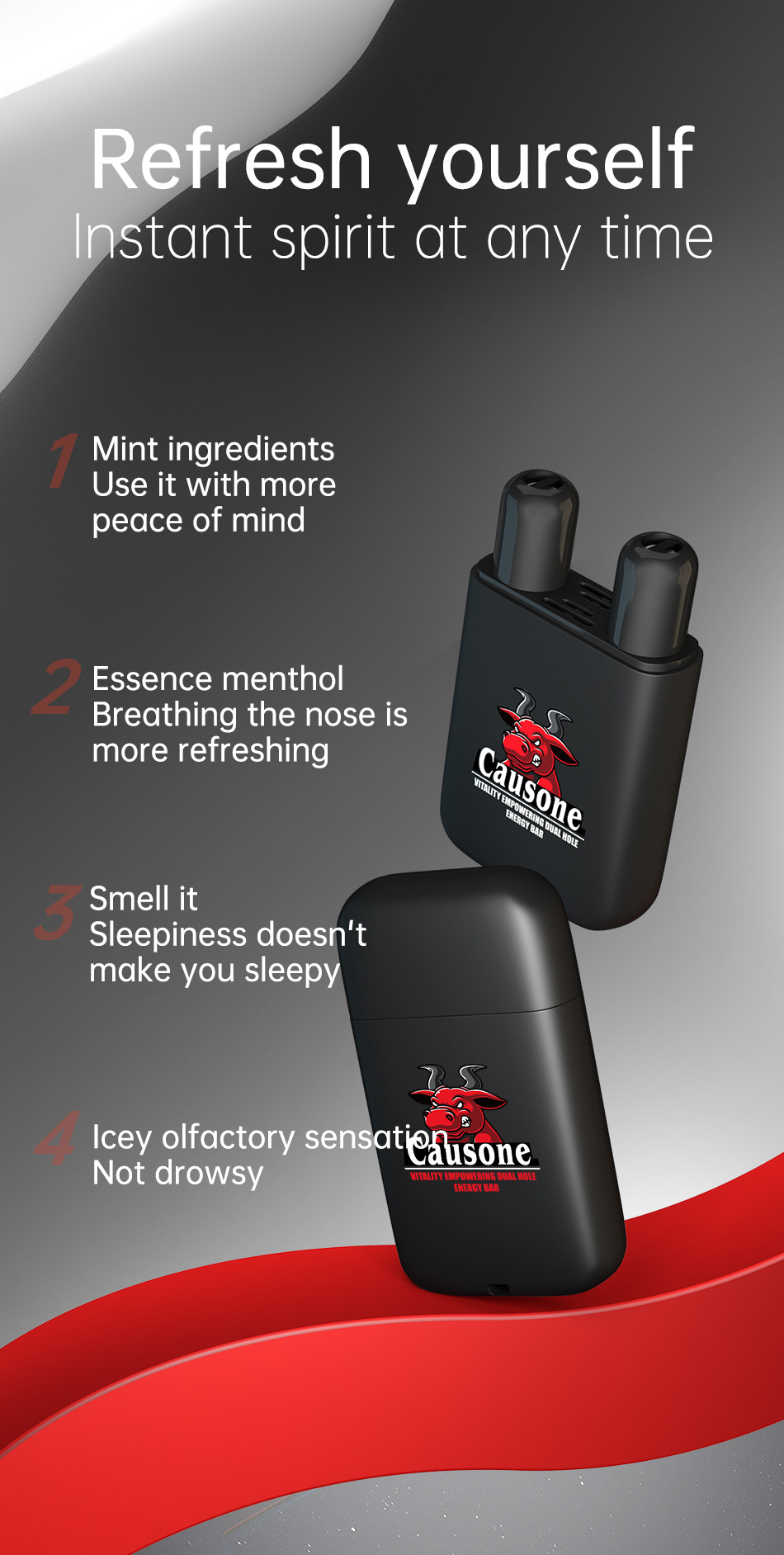 CAUSONE ウォーフォース レッドブル ダブルコア ノーズスティック 眠気覚まし、夜更かし、眠気覚まし、ドライブ時の眠気覚まし、エナジーバー