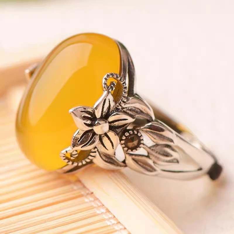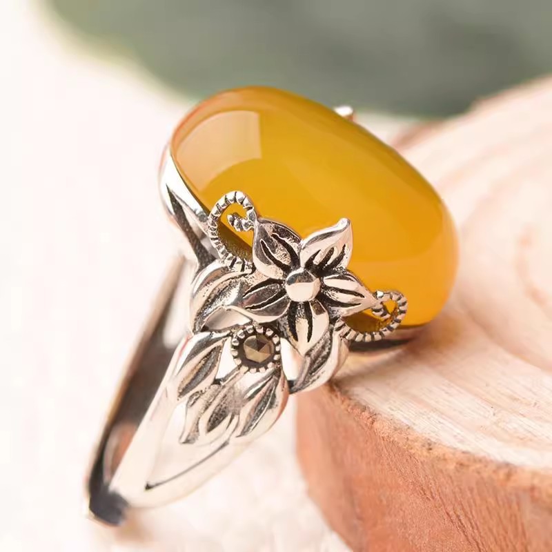 天然蜜蜡祥云S925银戒指女轻奢高级感复古不掉色开口可调节食指环
