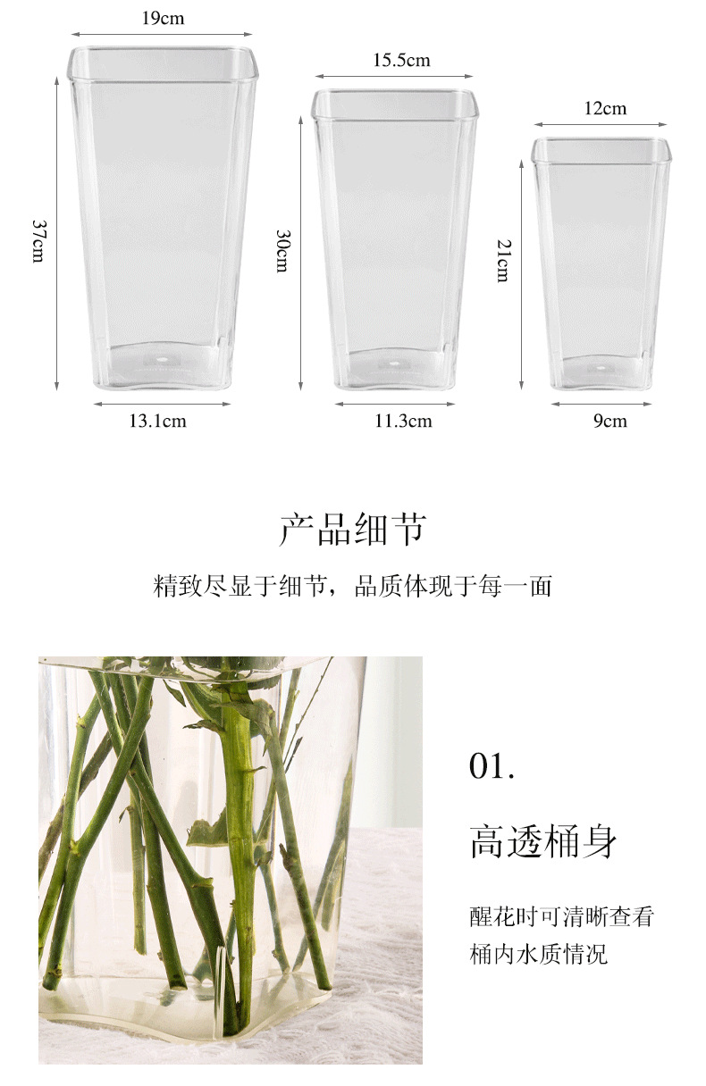 アクリル透明目が覚めた花桶養花桶生け花桶花瓶家庭用花屋富貴竹乾花花瓶卸売り