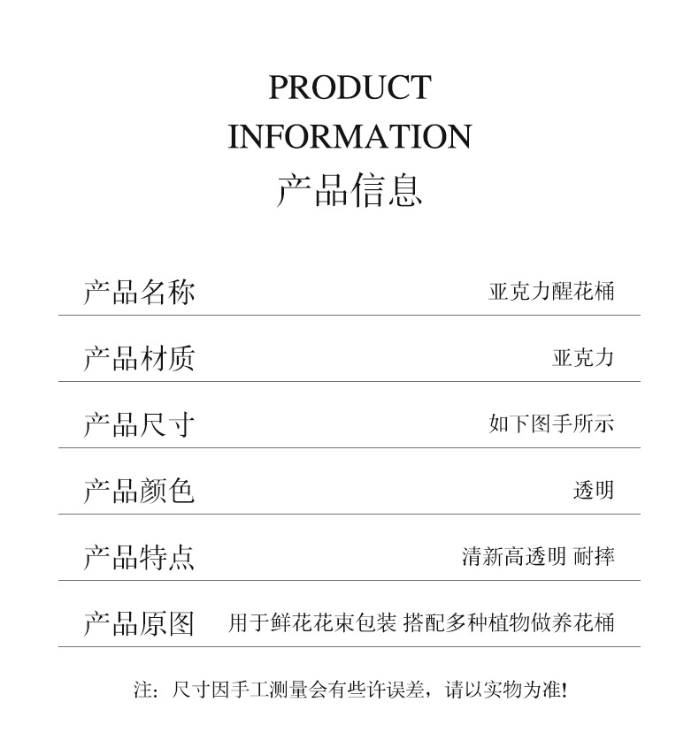 跨境透明亚克力醒花桶养花桶花束花瓶法式插花桶花店家用泡鲜花筒