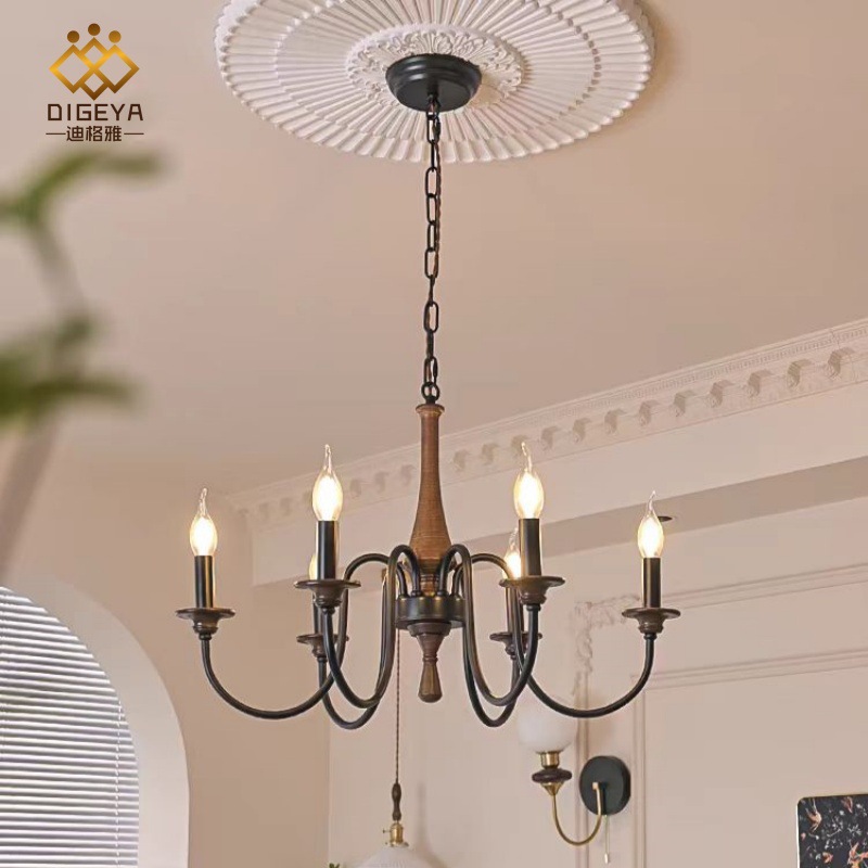 迪格雅式レトロ実木客間シャンデリア創意個性寝室レストラン民宿ろうそくLED照明