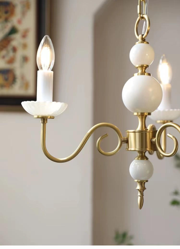 フランス式の軽くて豪華なクリーム風の黄銅の乳の白いガラスのろうそくのシャンデリアの復古的なアメリカの陶磁器のレストランの寝室は明かりを飾ります。