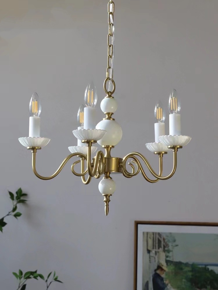 ディグヤ現代フランス式アメリカ式全銅シンプルクリームすずらん寝室シャンデリアフード間リビングレストランシャンデリア
