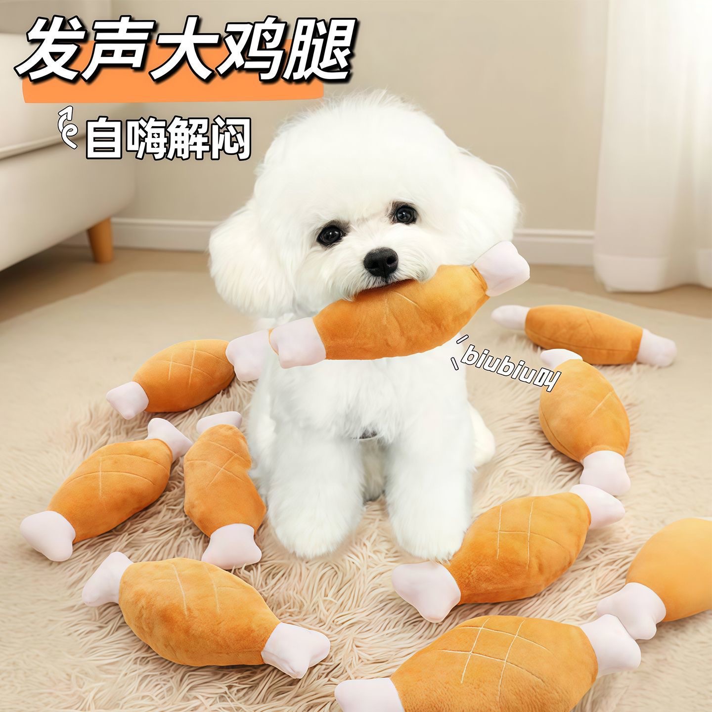 小狗狗玩具耐咬仿真炸鸡腿宠物磨牙发声玩具互动解闷毛绒鸡腿玩具