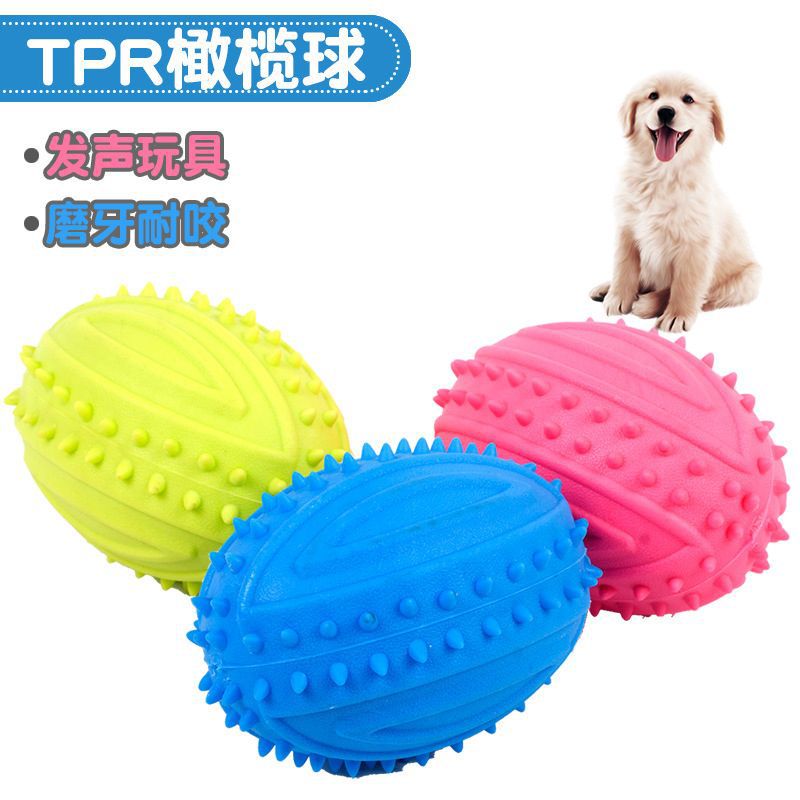 宠物狗狗玩具 TPR发声橄榄球磨牙洁齿狗玩具泰迪比熊金毛玩具批发