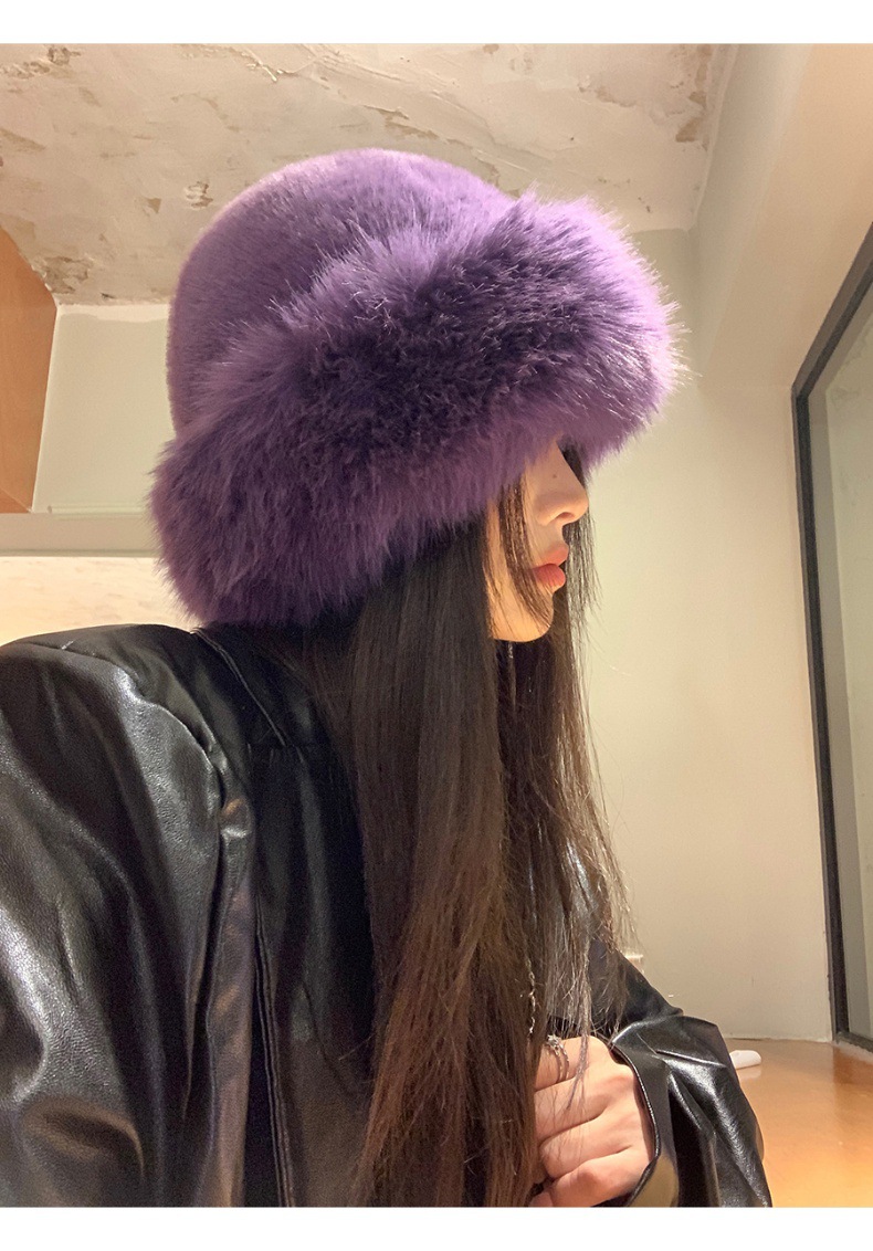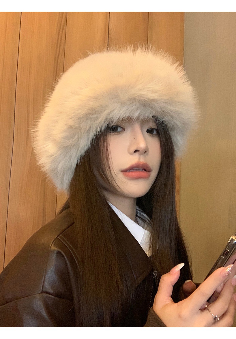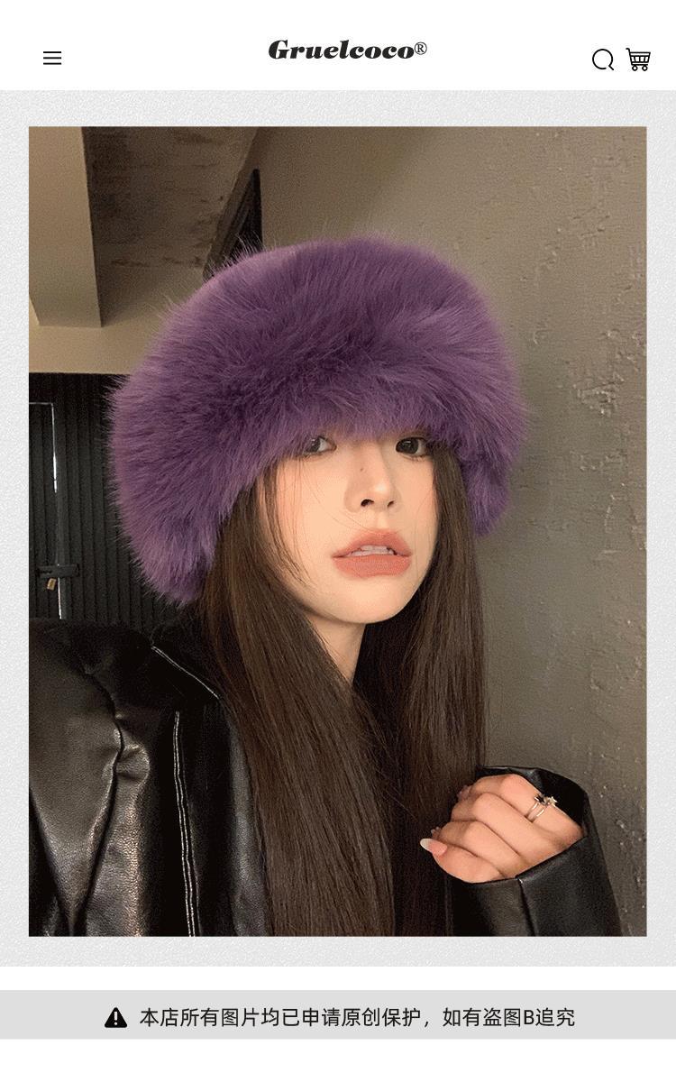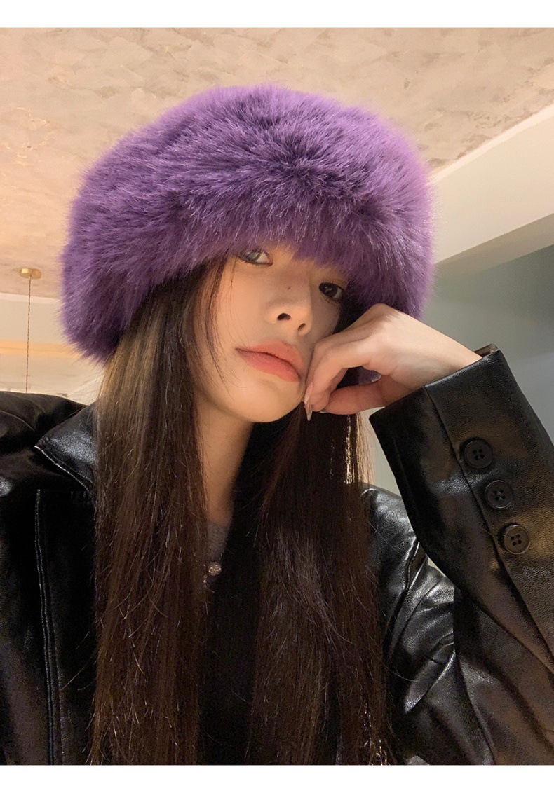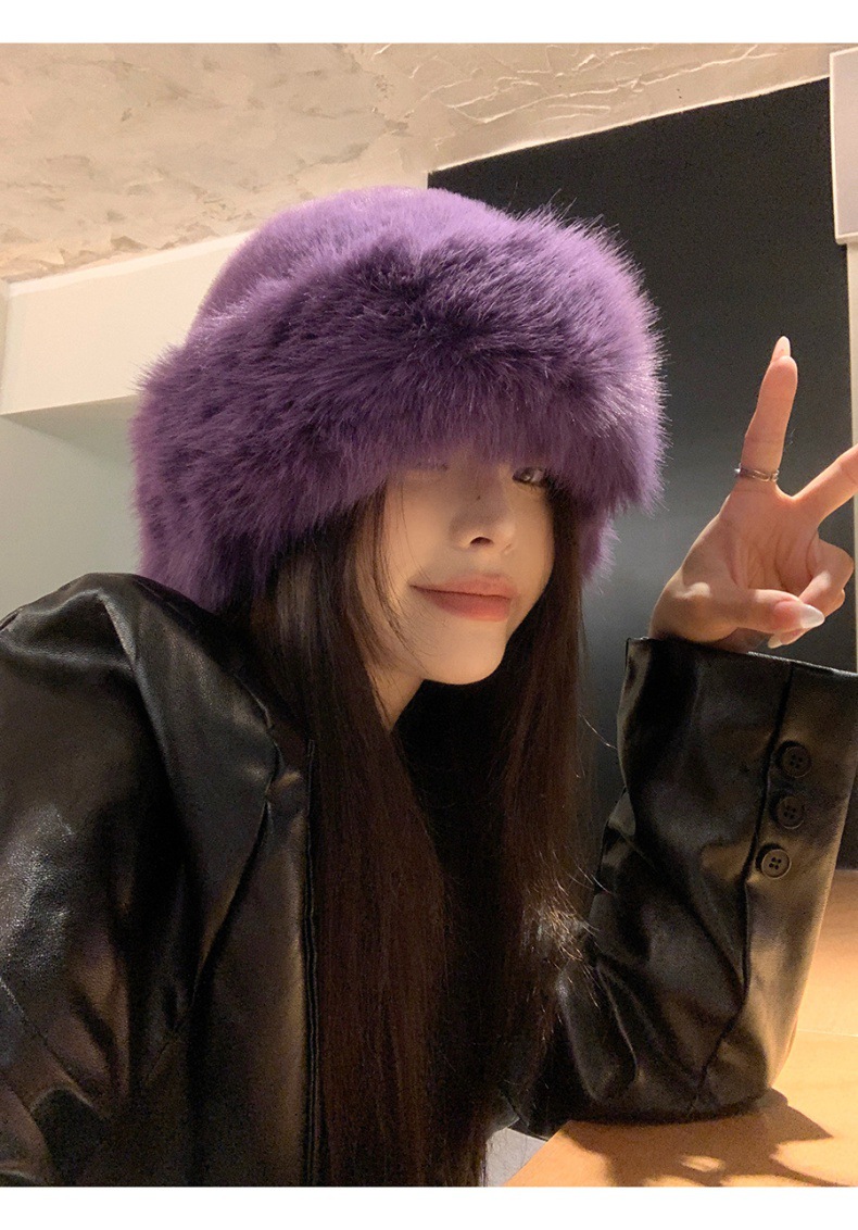 秋冬のぬいぐるみの韓国系の毛糸帽子の女性モデルはウサギの毛に似せています。