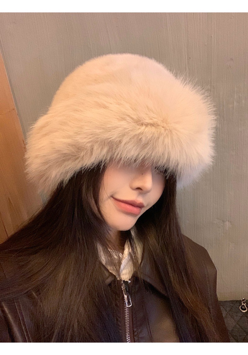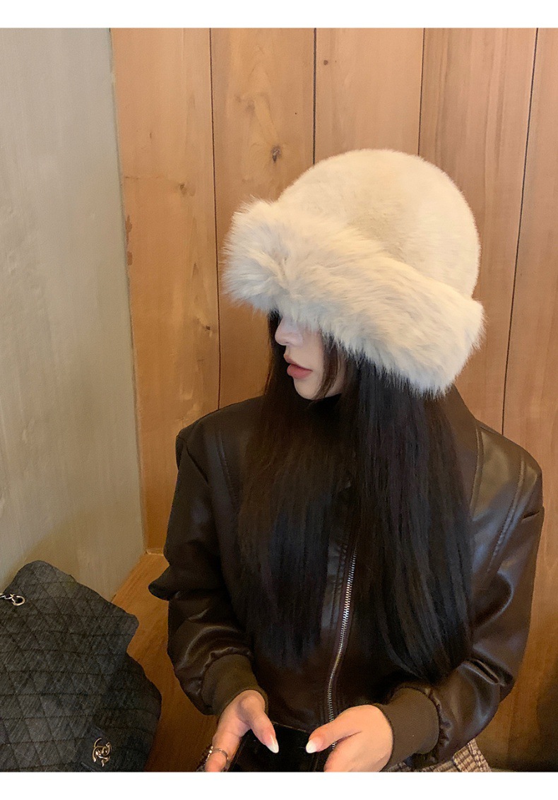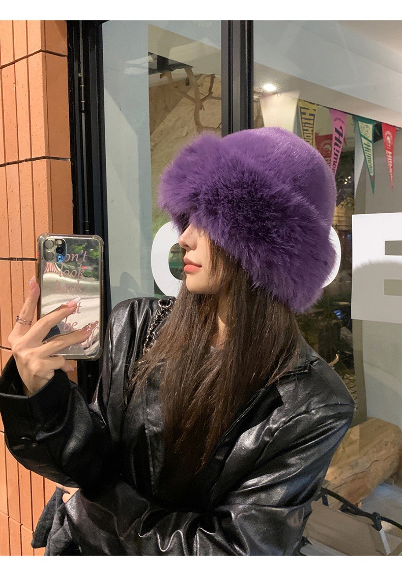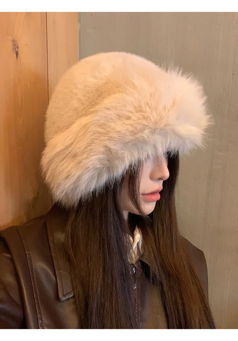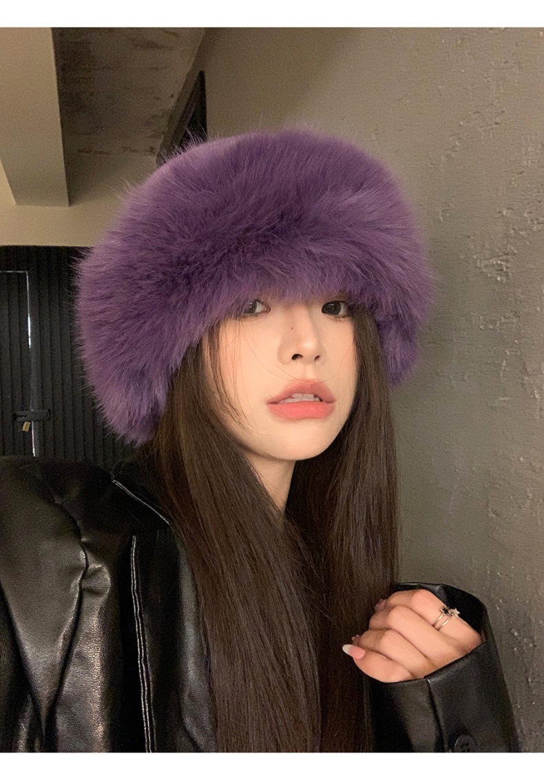 秋冬のぬいぐるみの韓国系の毛糸帽子の女性モデルはウサギの毛に似せています。