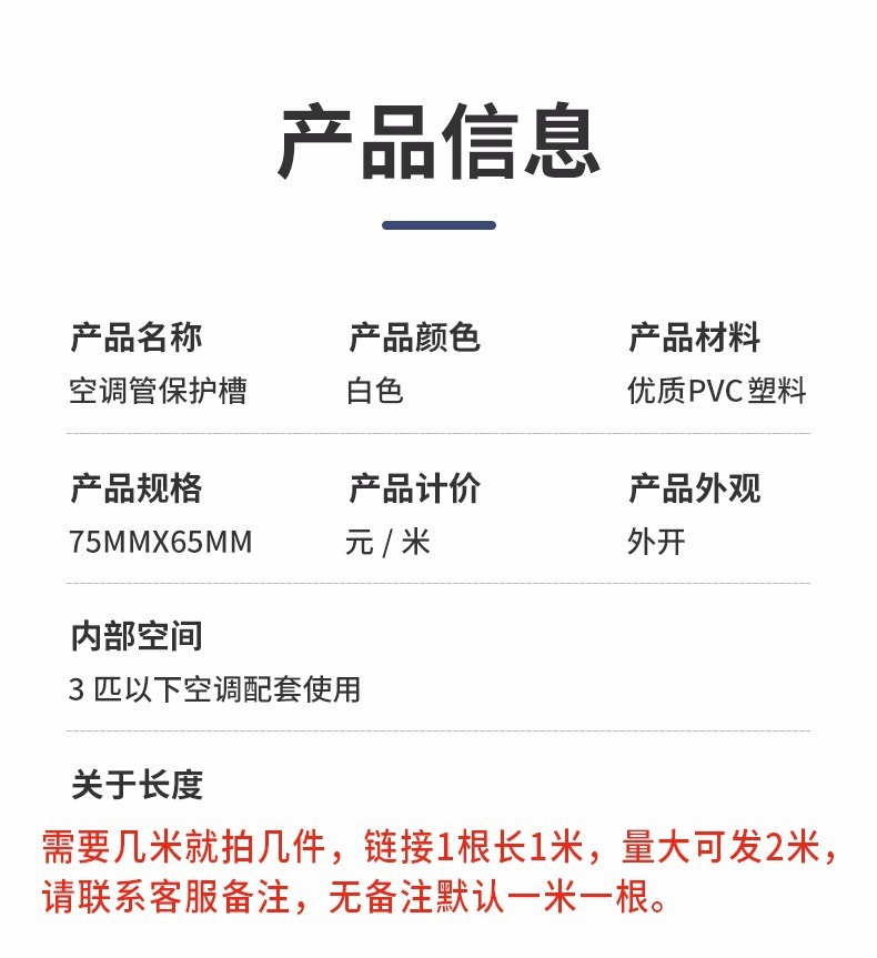 製品仕様 75*65直管1メートルあたりの価格 (適用3匹以下),75*65ホース,75*65水平ベンド,75*65ダイレクト,75*65壁カバー (曲げ),75*65垂直曲げ,75*65壁穴カバー (直出),75*65テール,75*65 45 ° 曲げ,75回転100転送,75*65 7点セット (45 ° 曲げと壁穴カバーなし),75*65 8点セット (壁穴なしカバー),75*65 9点セット直管2メートルの他の部品はそれぞれ1つずつ