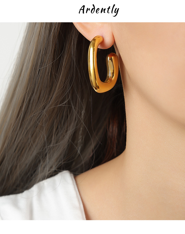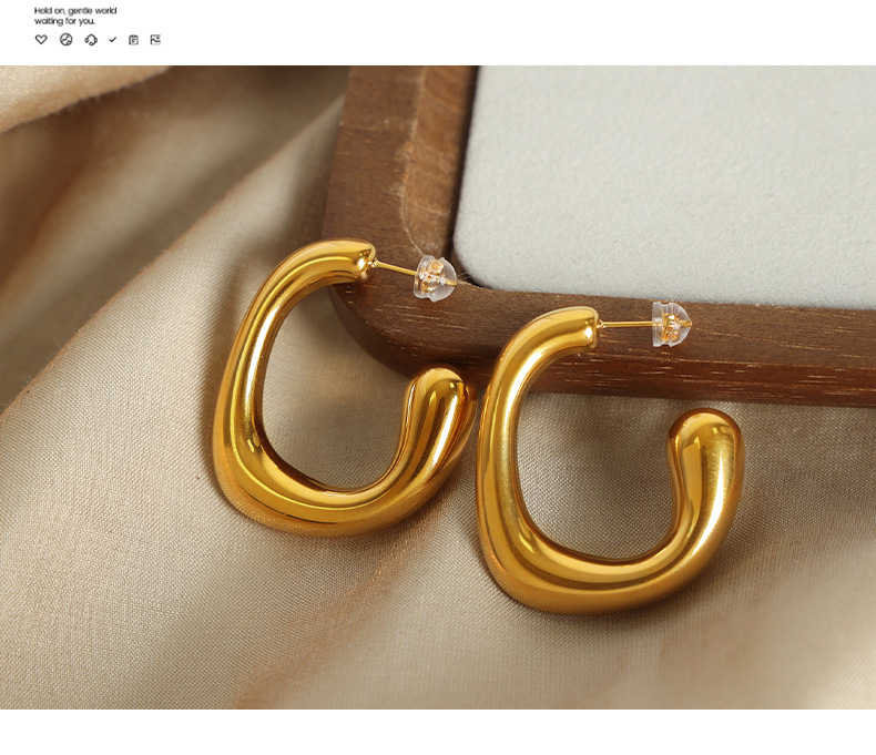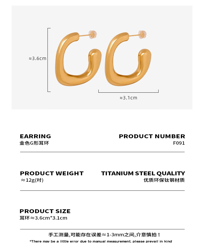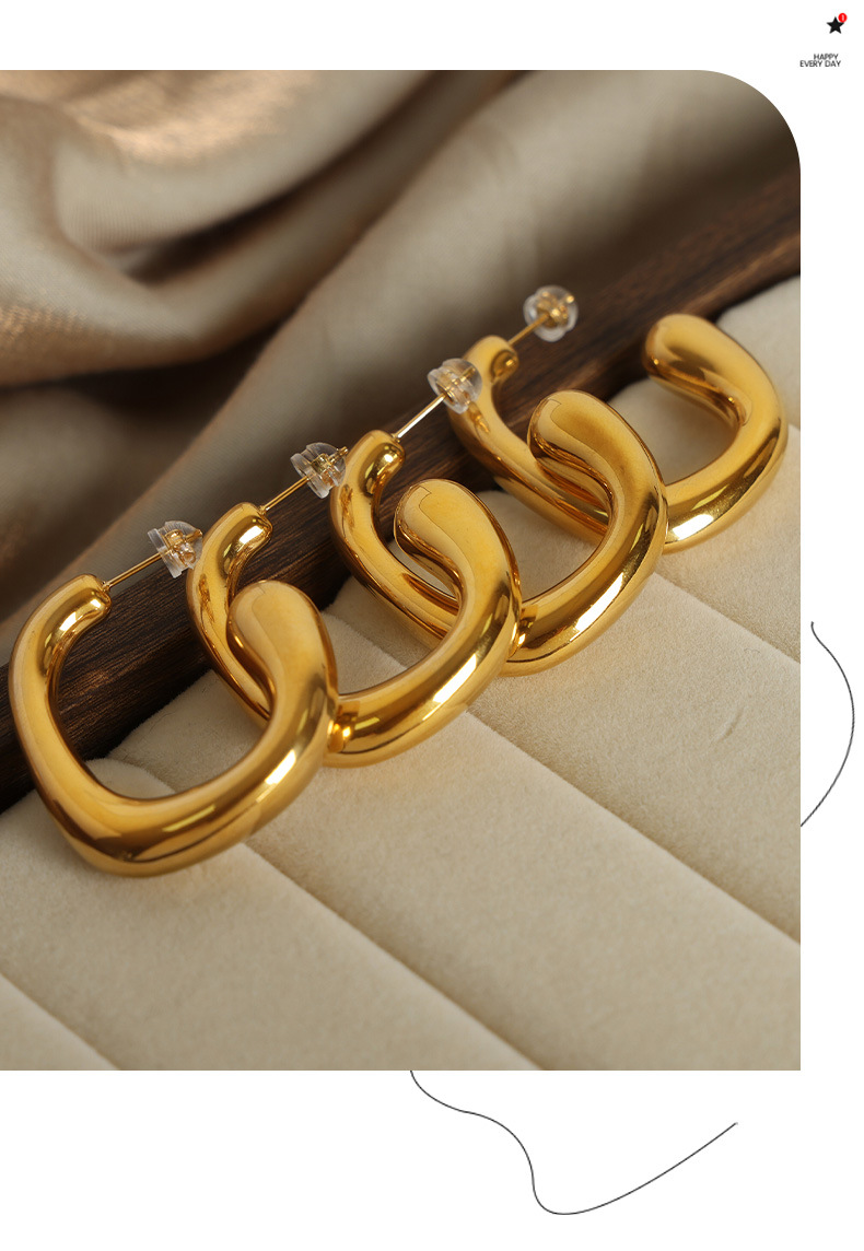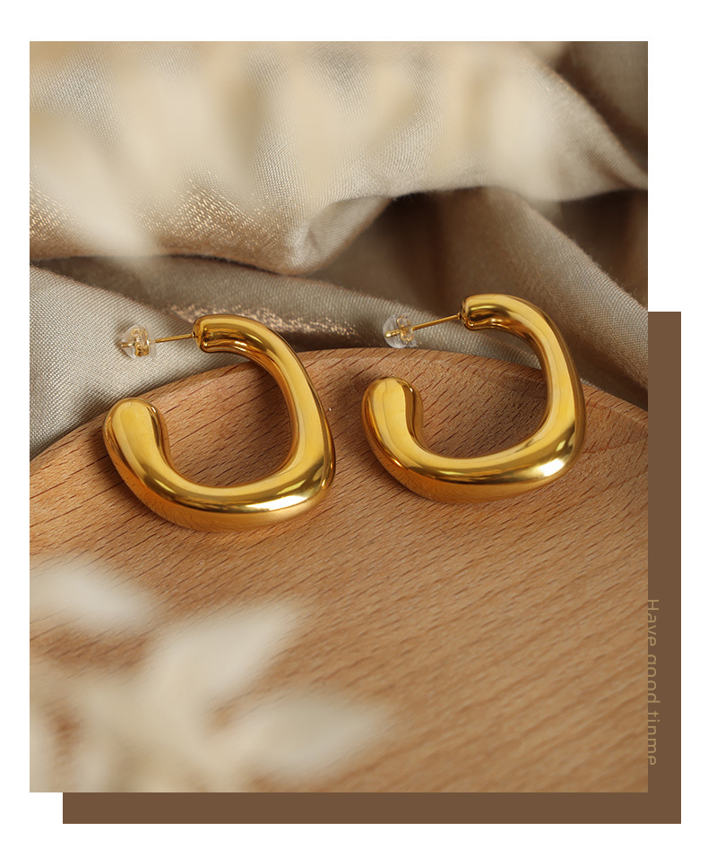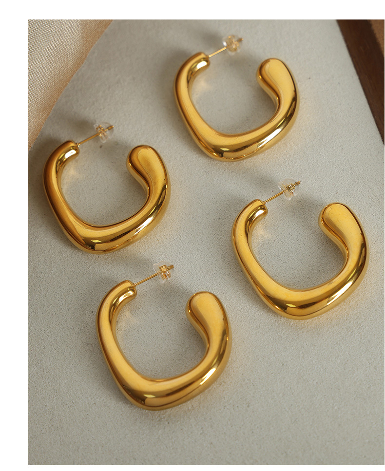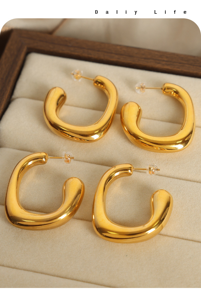 20025フランス式新型ステンレスG形金メッキ幾何イヤリング誇張ファッション個性耳飾り大衆デザイン