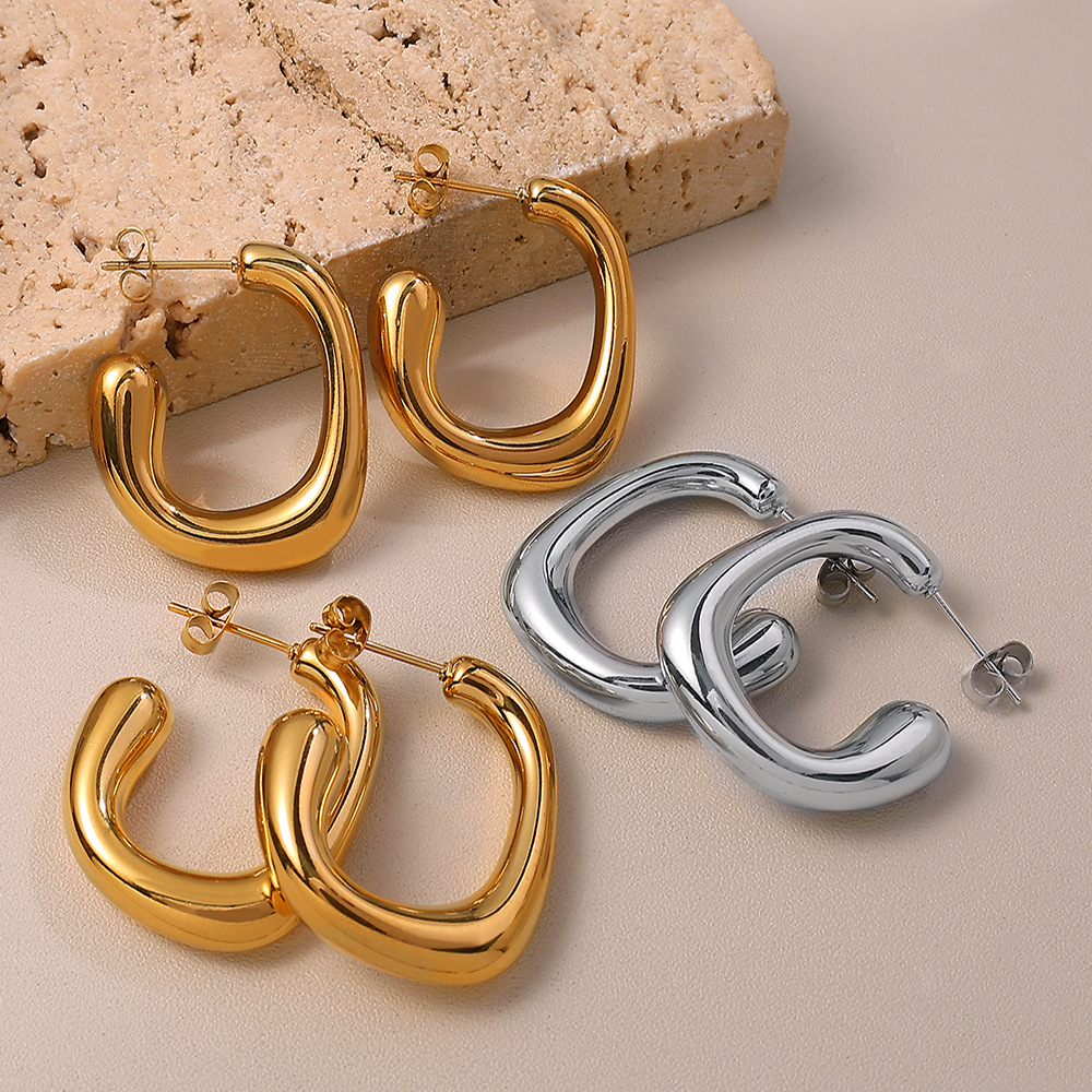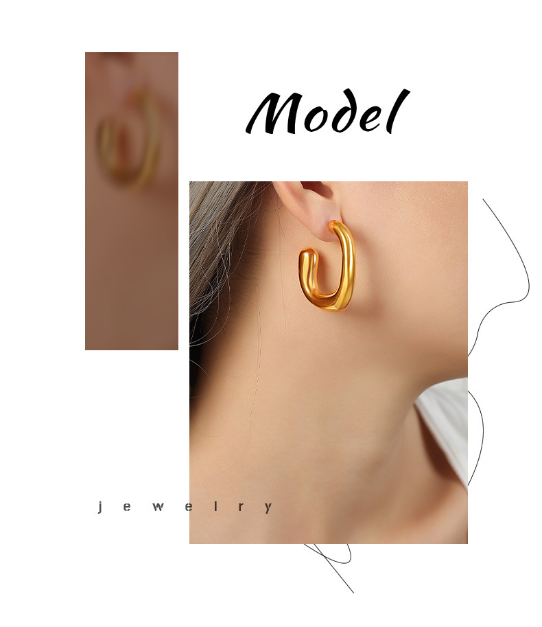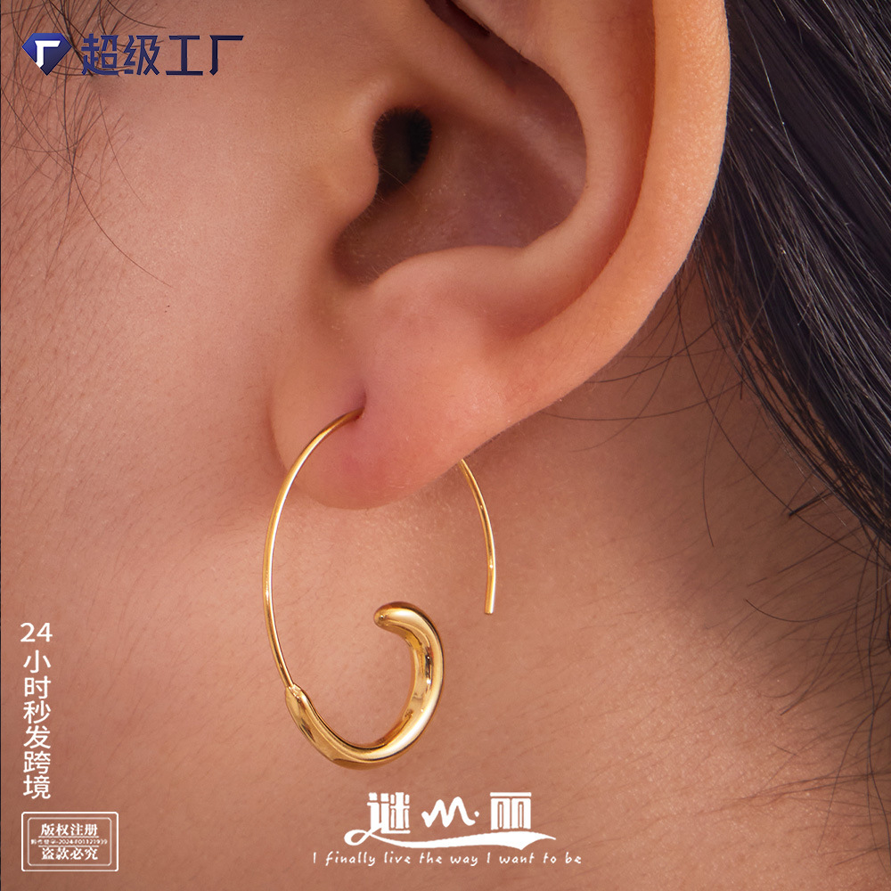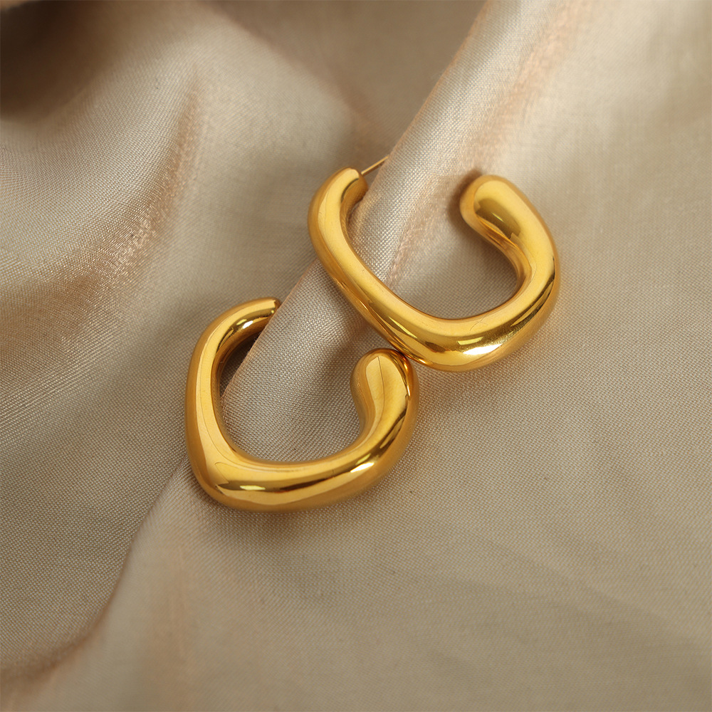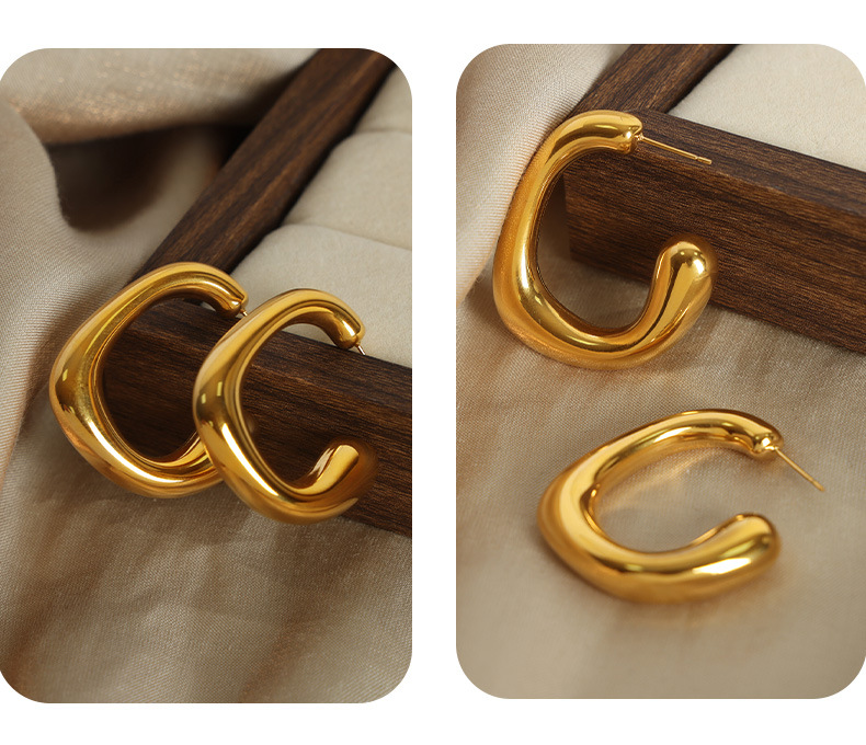 谜丽 小众设计感C形极简耳圈PVD镀真金欧美风时尚不锈钢耳环批发