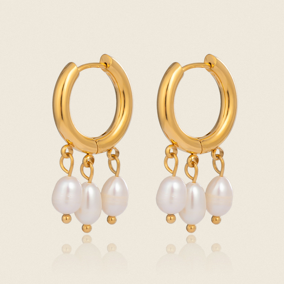 夏凌简约设计优雅不锈钢淡水珍珠吊坠耳饰 18K镀金气质百搭耳饰女