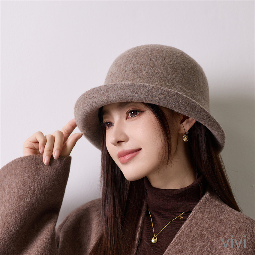 卷边羊毛呢渔夫帽女士秋冬季保暖时尚百搭英伦复古盆帽日系显脸小