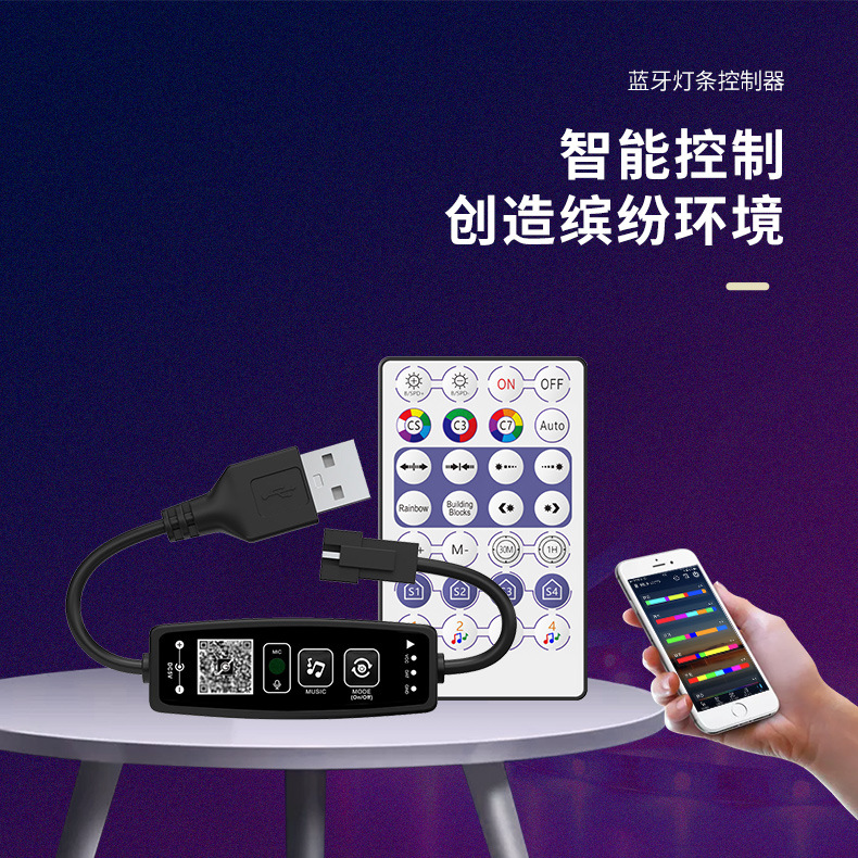 5V幻彩皮線灯コントローラbluetooth制御音楽モードカスタム機能塗布機能複数の動態