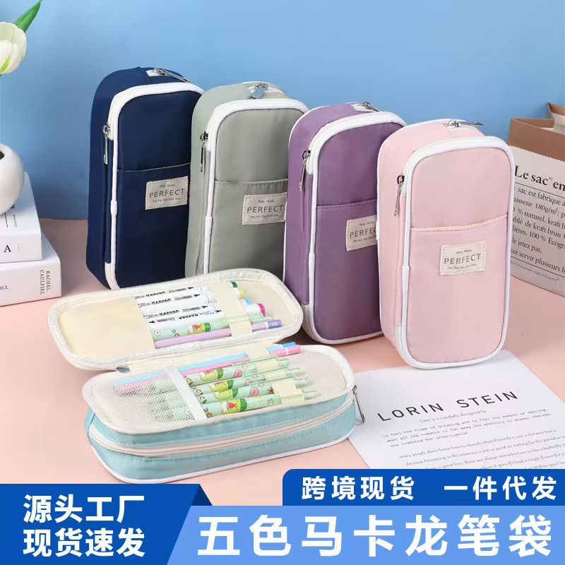 クロスボーダー既製無地大容量筆袋男女兼用多層中学生高校生シンプル筆袋マカロン文具箱