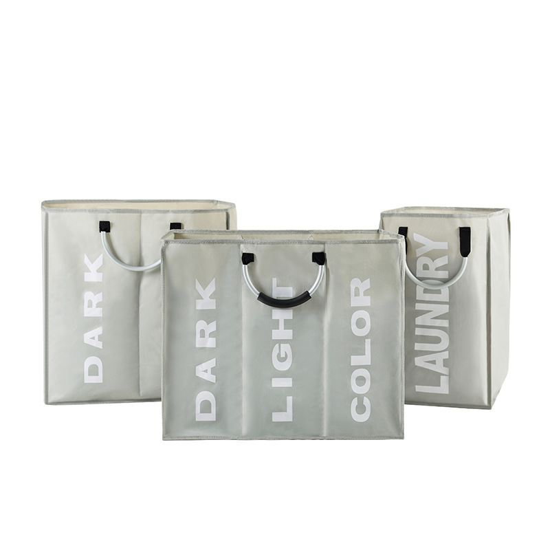 三格のアルミニウムはオックスフォードの布の汚い服のかごを持ち上げて、折り畳みの洗濯かごを手に持って、家庭の収納物を整理して服のかごを収納します。