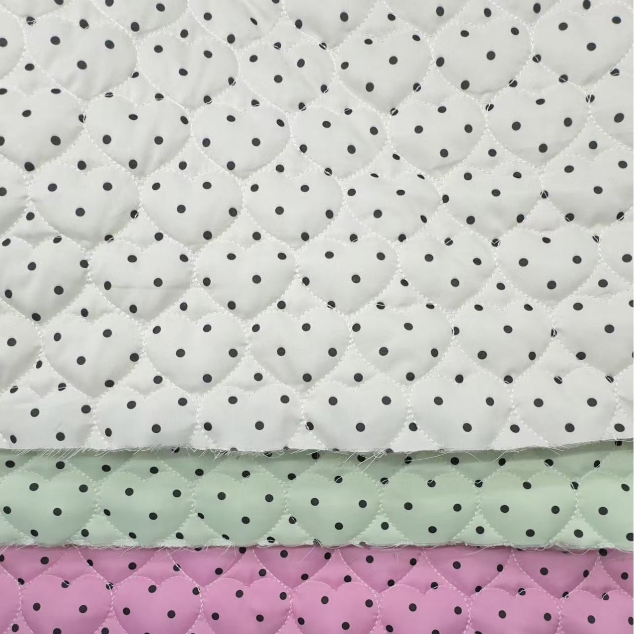 春亚纺绗绣错位爱心印小圆点绗缝PU夹棉复合爱心箱包笔记本布料