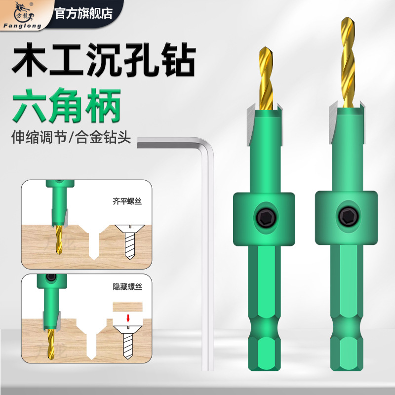 作用:可以同时钻出螺丝孔和容纳螺丝帽的沉孔并保持两者在同一轴线上,拧上螺丝以后螺丝帽位于板子平面以下!