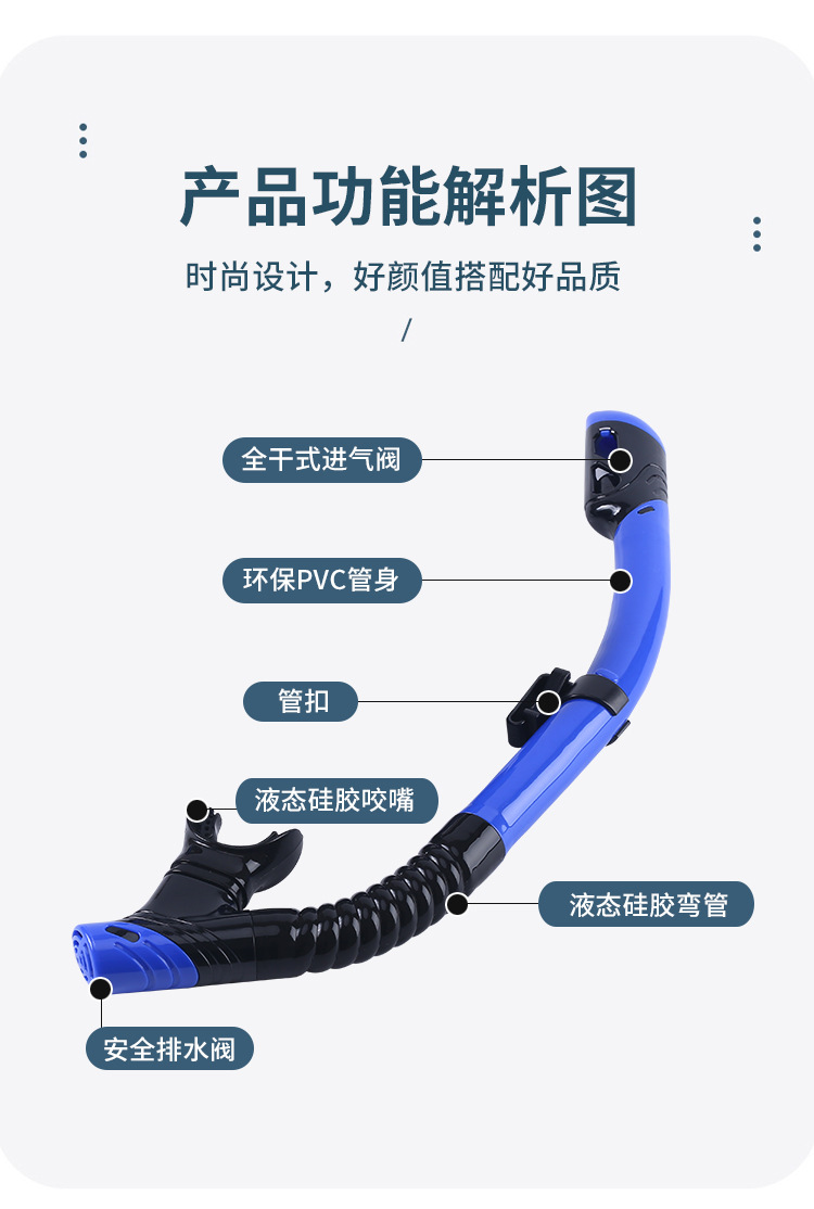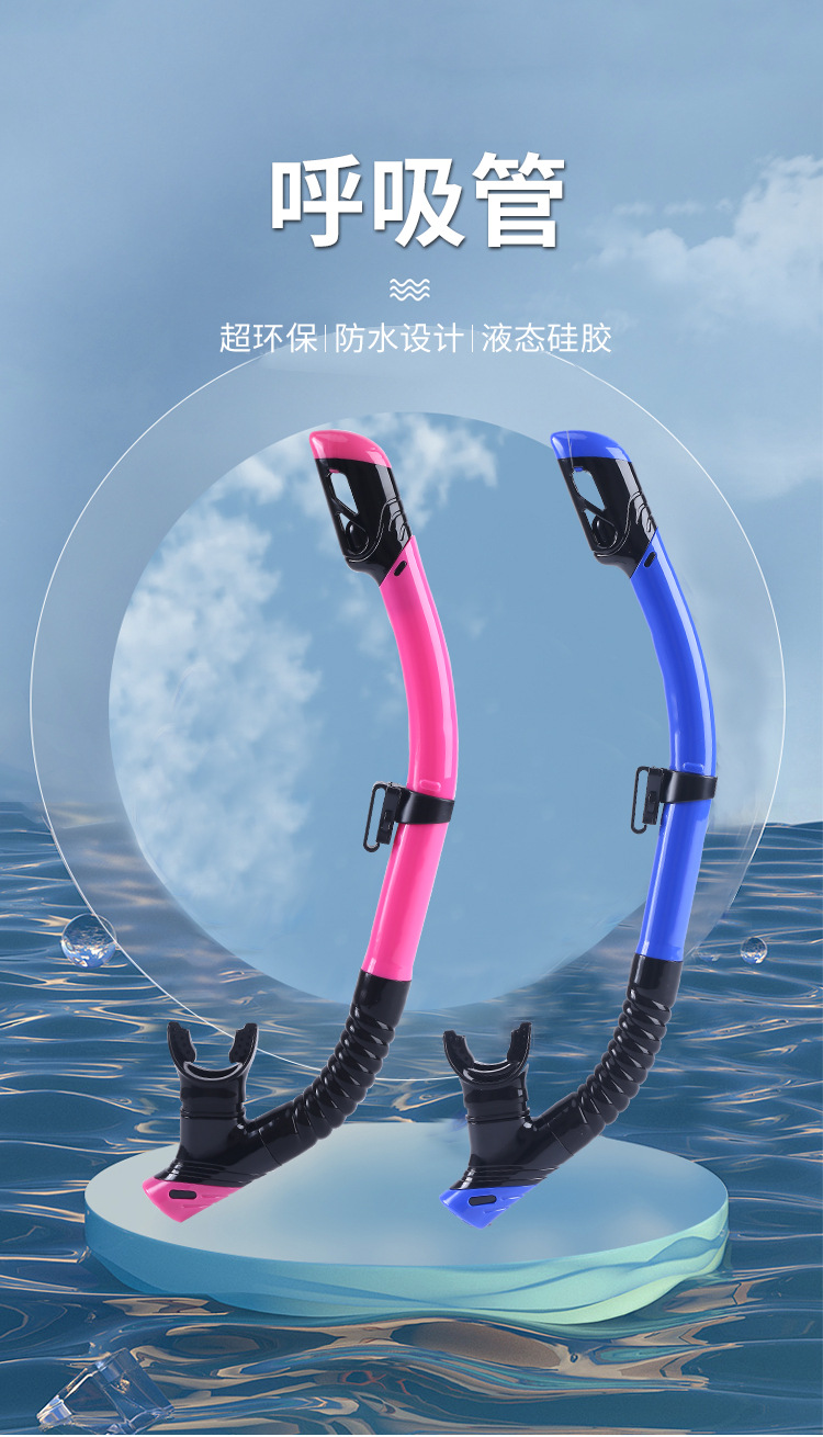 自由潜呼吸管湿式硅胶吸管可折叠弧形硅胶咬嘴柔软舒适跨境现货