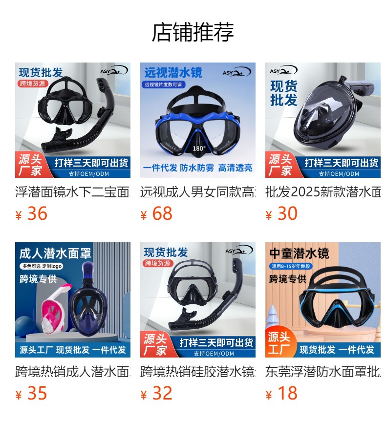 スポット卸売りパノラマ大枠潜水マスク製造水泳設備鼻保護一体液体シリコン潜水ミラー
