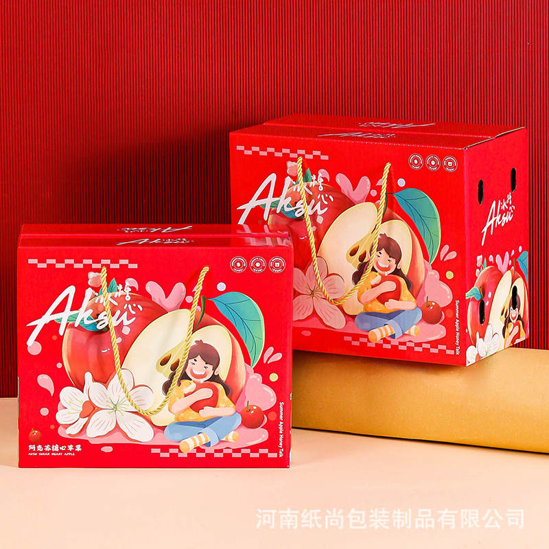 アップルギフトボックス水潤リンゴ高級包装10枚空箱天地蓋手提げギフトボックス卸売り工場直送