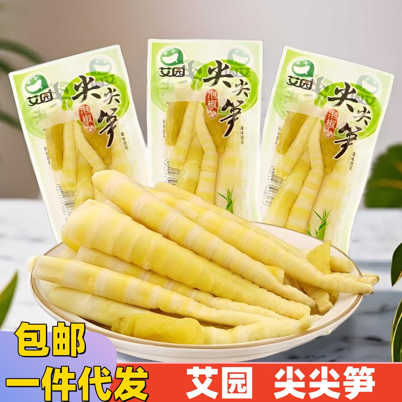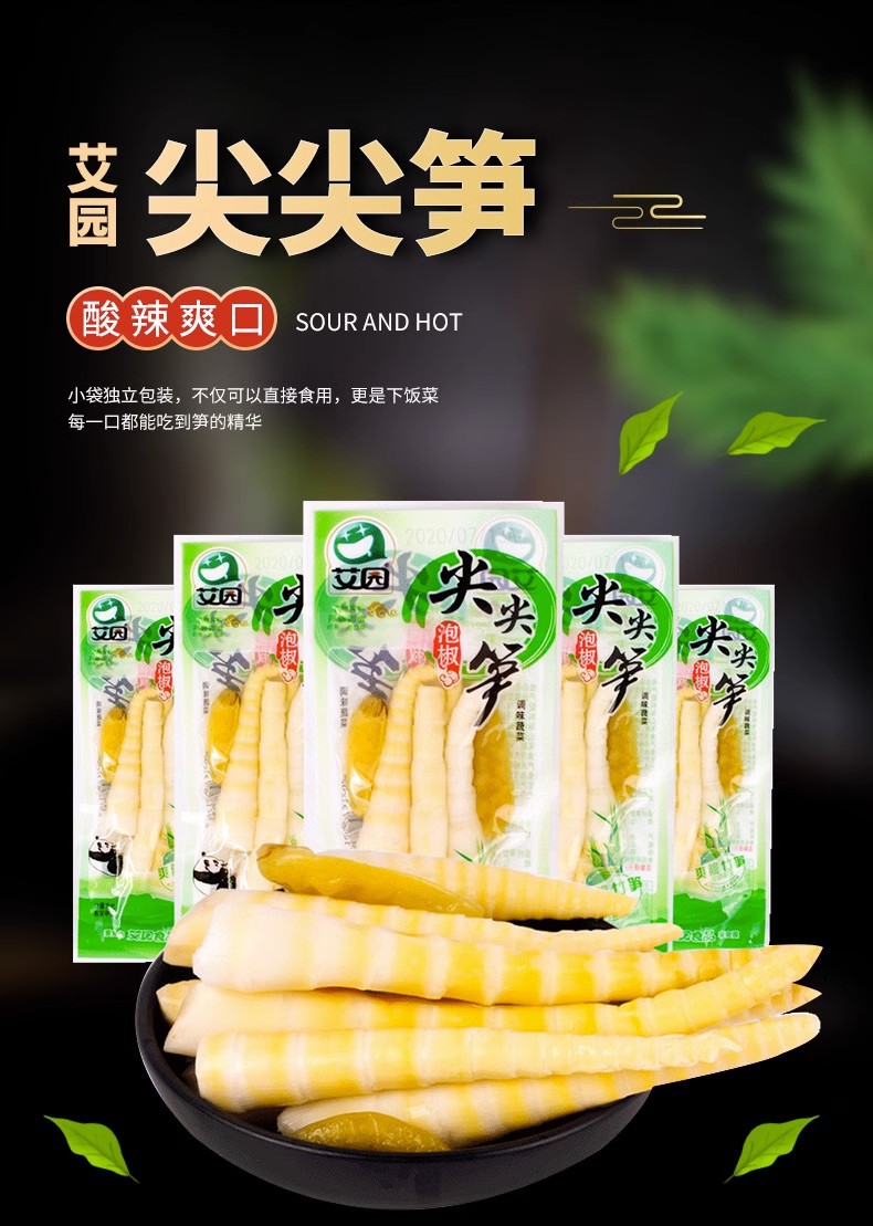 艾园泡椒尖尖笋竹笋酸辣笋尖开袋即食小包装休闲零食脆笋包邮批发