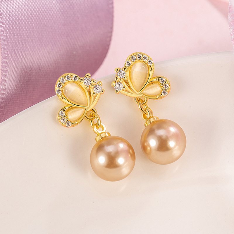 軽豪華蝶シャンパン色真珠イヤリング女性ファッション百合爆金ピアス高級感ピアスイヤリングアクセサリー