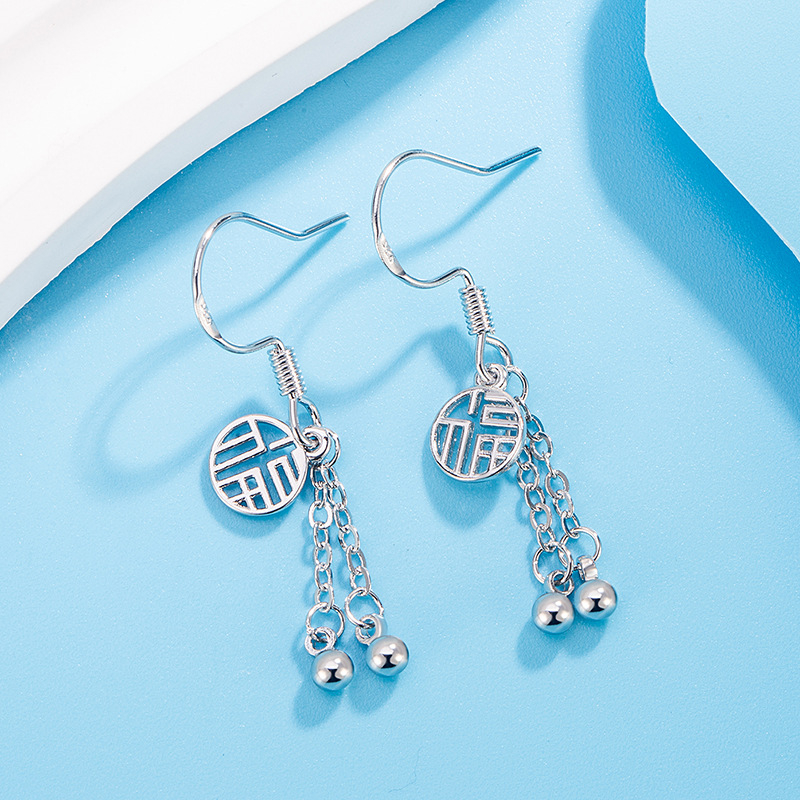 新中式新款福字流苏耳坠女高级感气质优雅耳钉小众设计耳环女