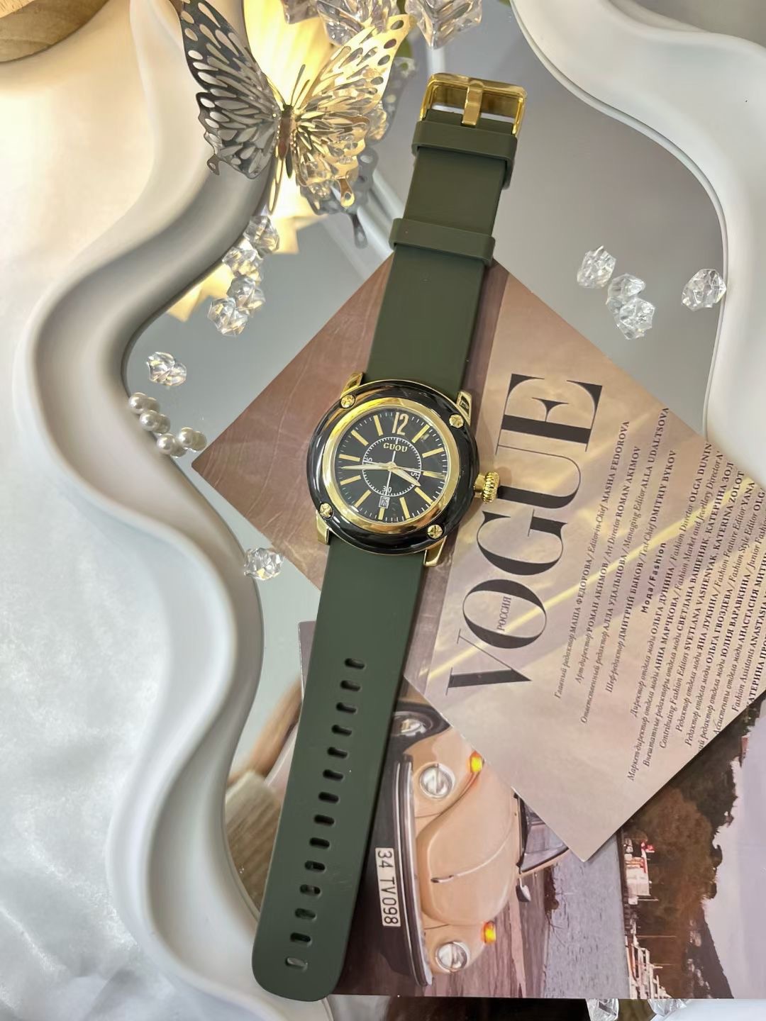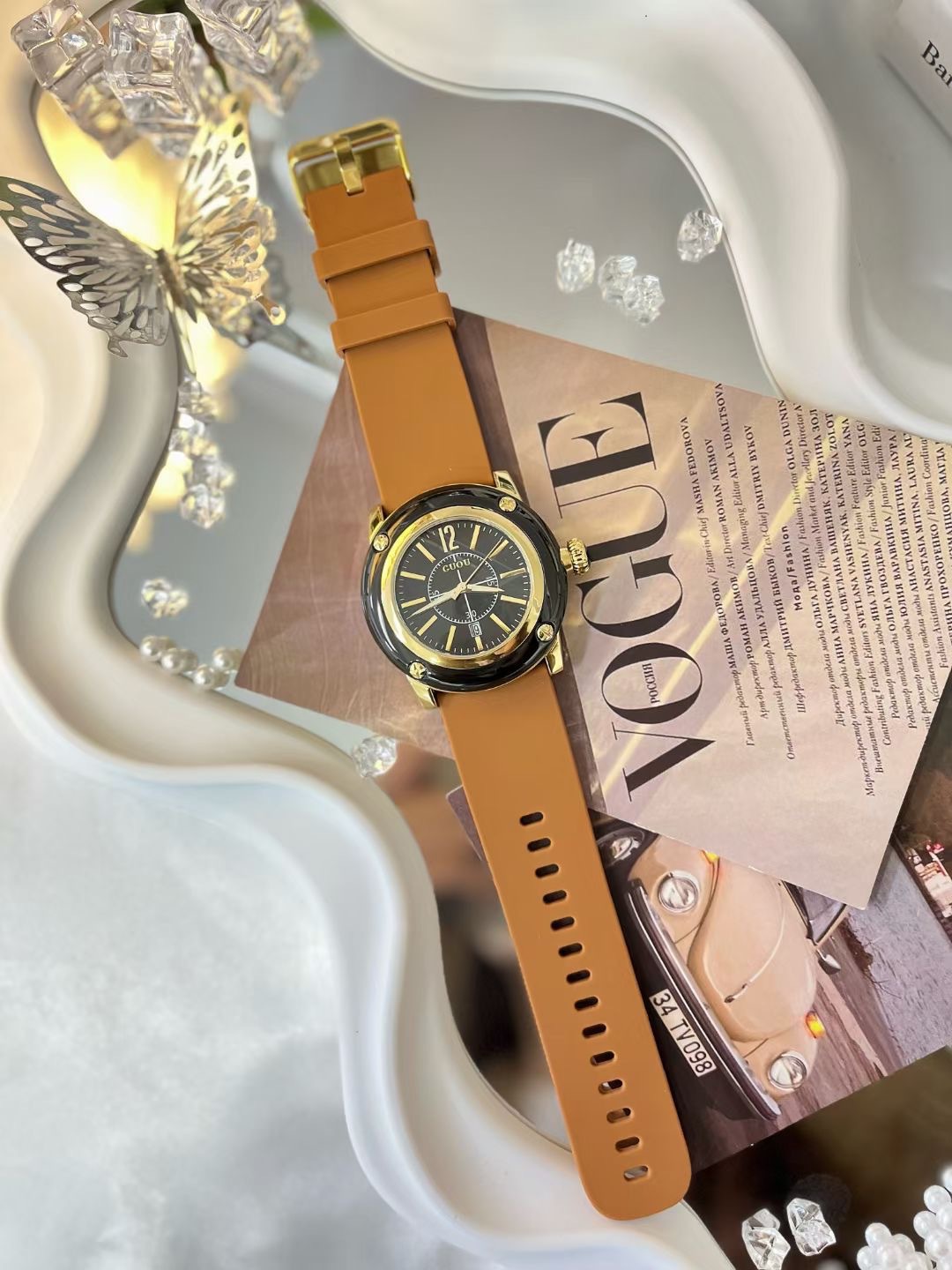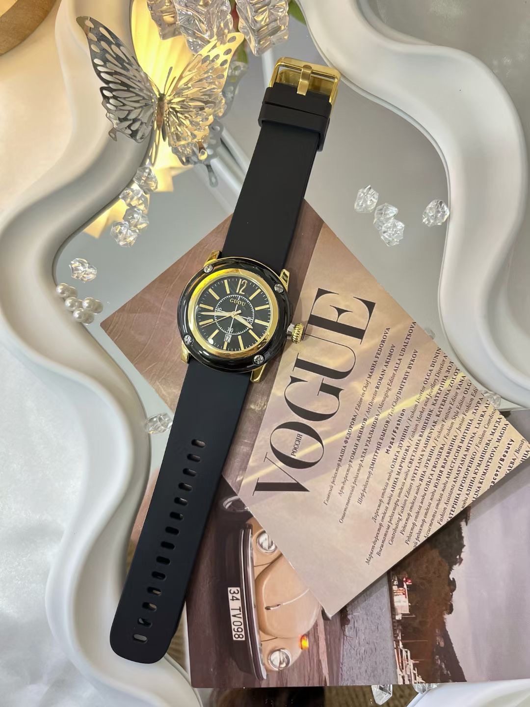 GUOU新型ヨーロッパ式ファッション大文字板女性時計シリコンテープ防水石英学生腕時計女性卸売り代発