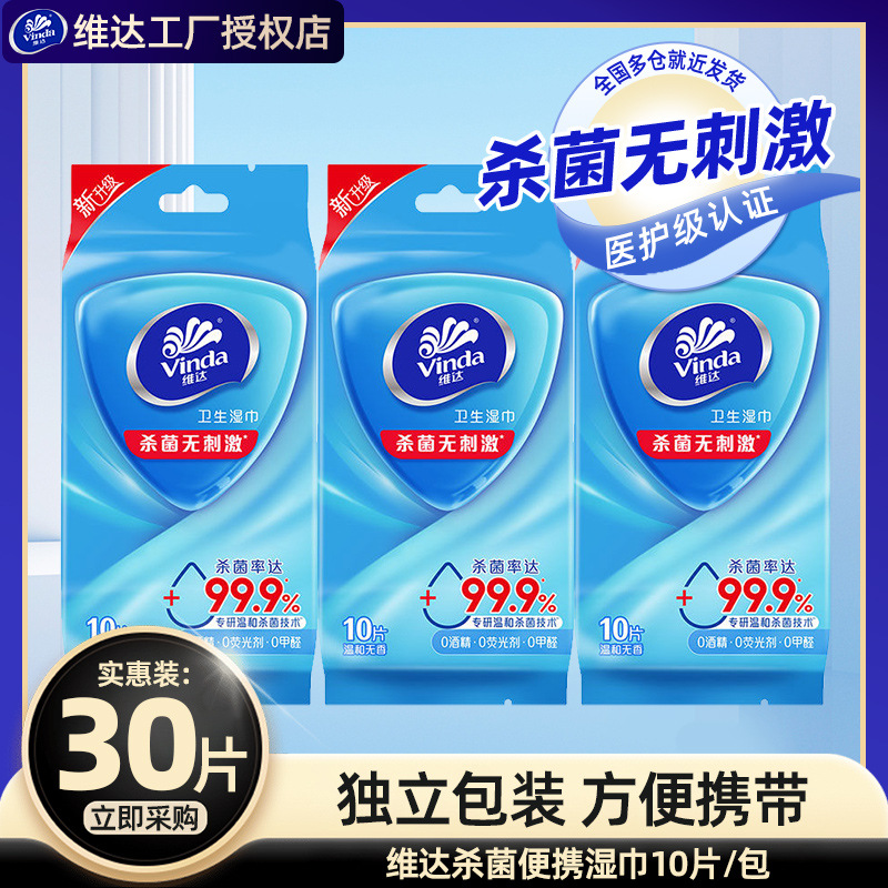 【特卖】维达湿巾独立片装便携式随身实惠包装小包湿纸巾家用湿巾