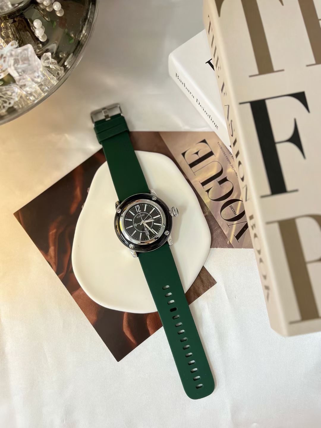GUOU新型韓国式ファッション大文字板夜光腕時計レディース学生シリコンテープカレンダー陶磁器サークル女性時計