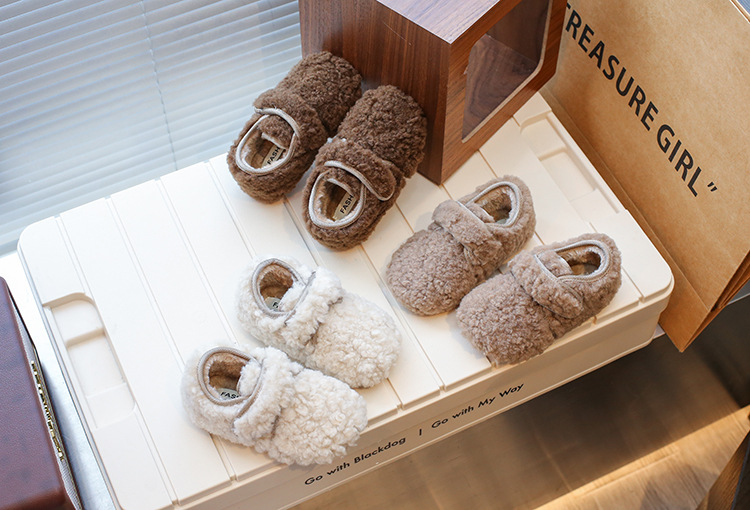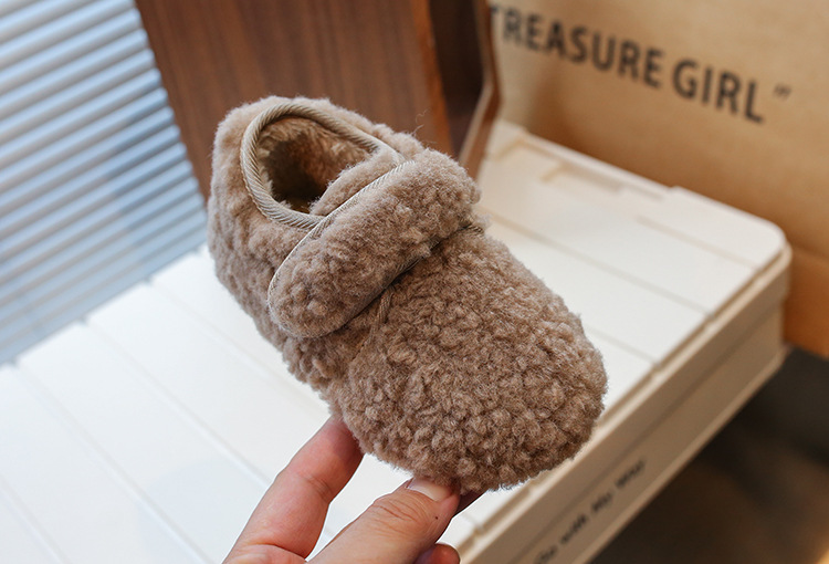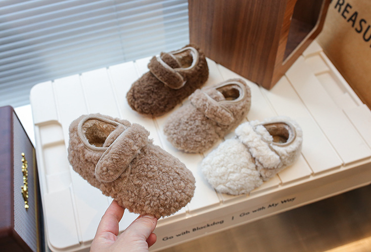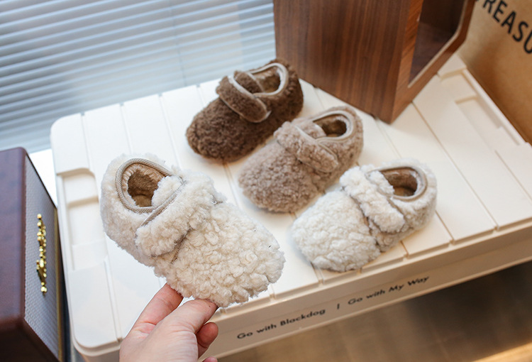 INS女児用フリース裏地付きシューズ2025冬新作韓国風男児用保温綿靴ネット人気可愛い豆豆シューズ