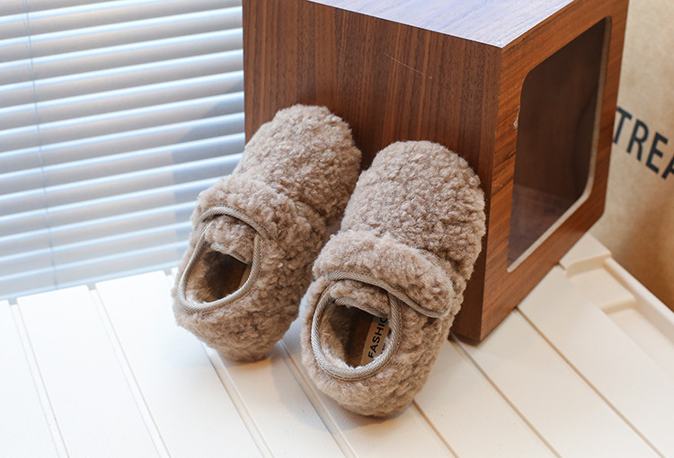 韩版童鞋格雷系冬季儿童毛呢面料毛毛勃肯鞋男女童百搭软底豆豆鞋