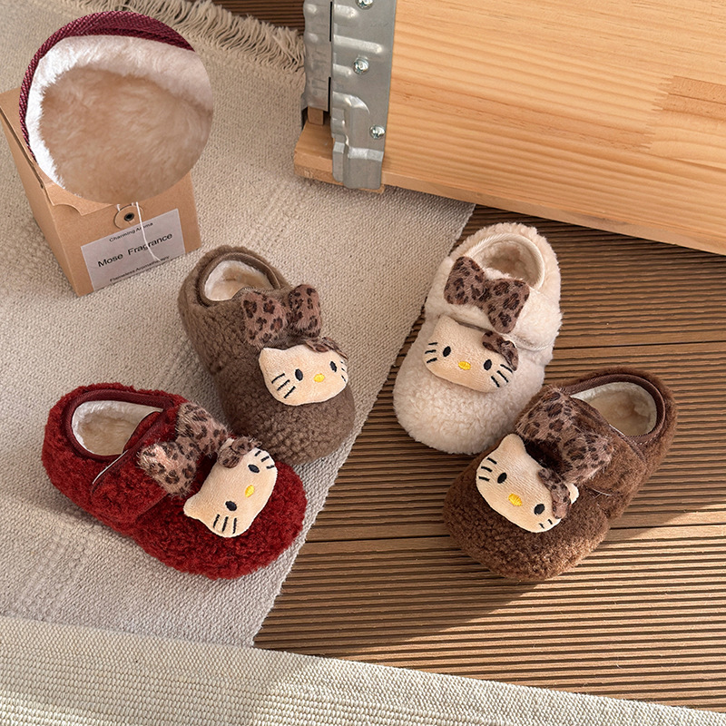 ins法式可爱加绒毛毛鞋2025秋冬季新款韩版女童豹纹猫咪保暖棉鞋