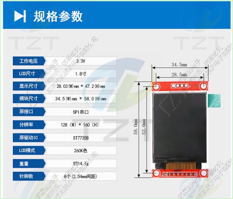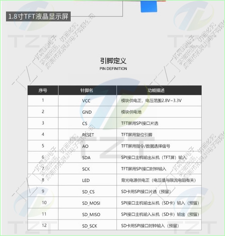 1.44/1.77/2.0/2.4/2.8インチTFT液晶ディスプレイモジュールインターフェースSPIブラックLCD
