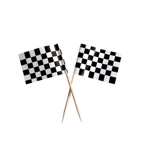 バースデーケーキの装飾の小さい車のカードのレースの総動員の車の標識の白黒の小さい旗の24本