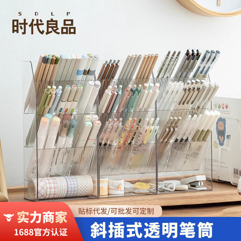 透明な斜め挿し式の筆立ての軽い贅沢な口紅の収納箱の事務室の学生のデスクトップの創意の多機能の文房具の筆立て