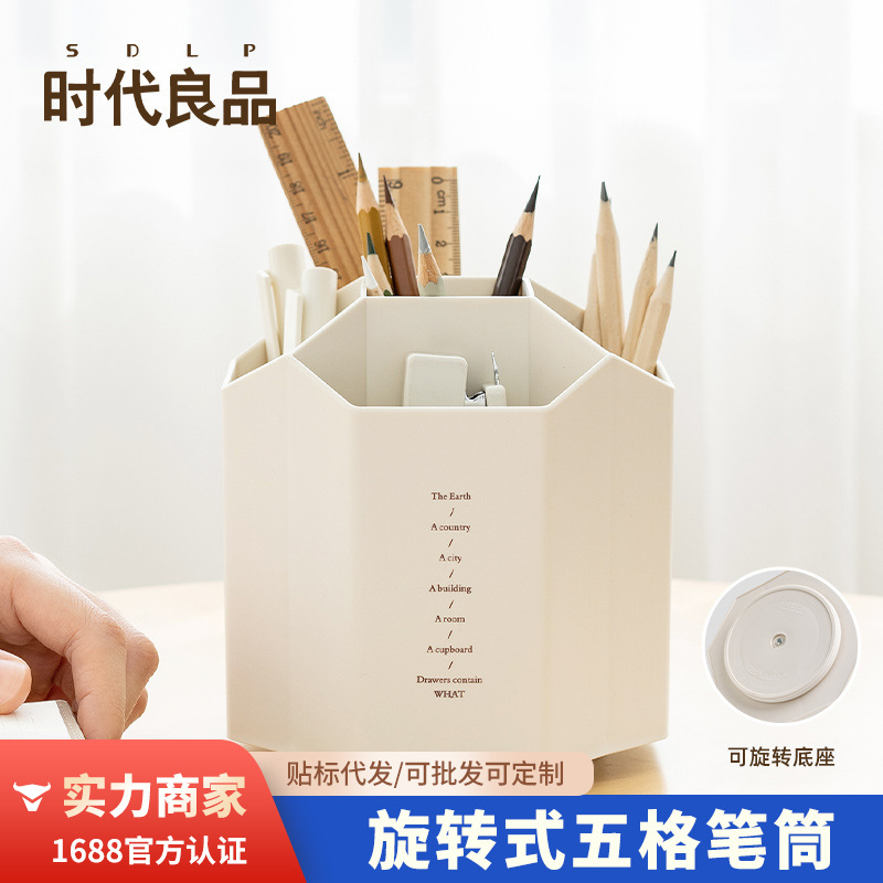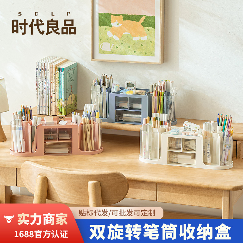 時代良品個性創意筆筒回転多機能大容量デスクトップ収納ボックス学生オフィス筆筒