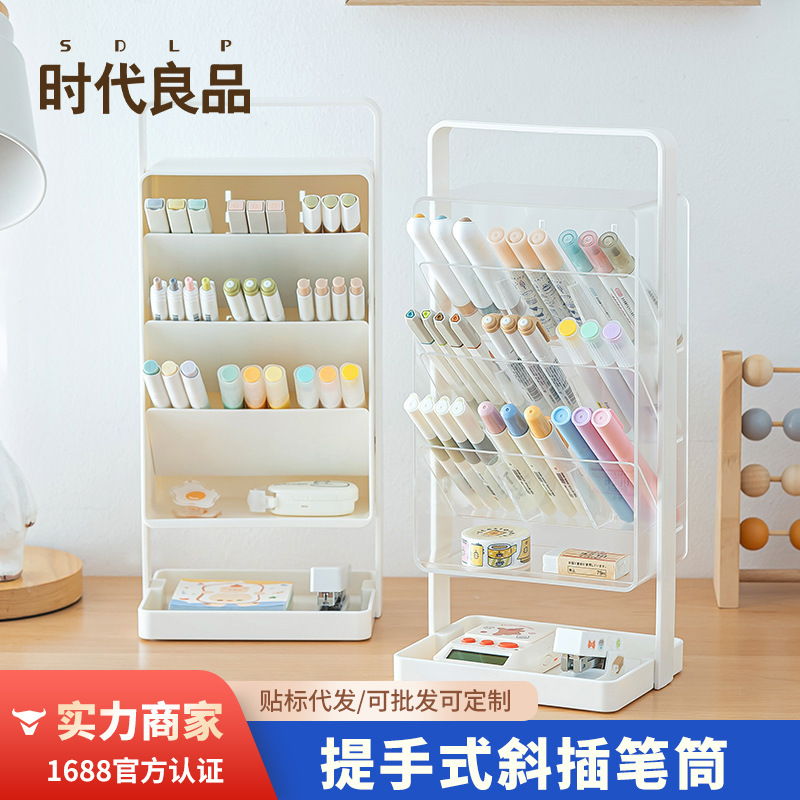 創意的な斜め挿し式の筆立ての取っ手は箱の事務室の学生のデスクトップの大容量の筆桶の子供の筆箱の筆立てを収納します。
