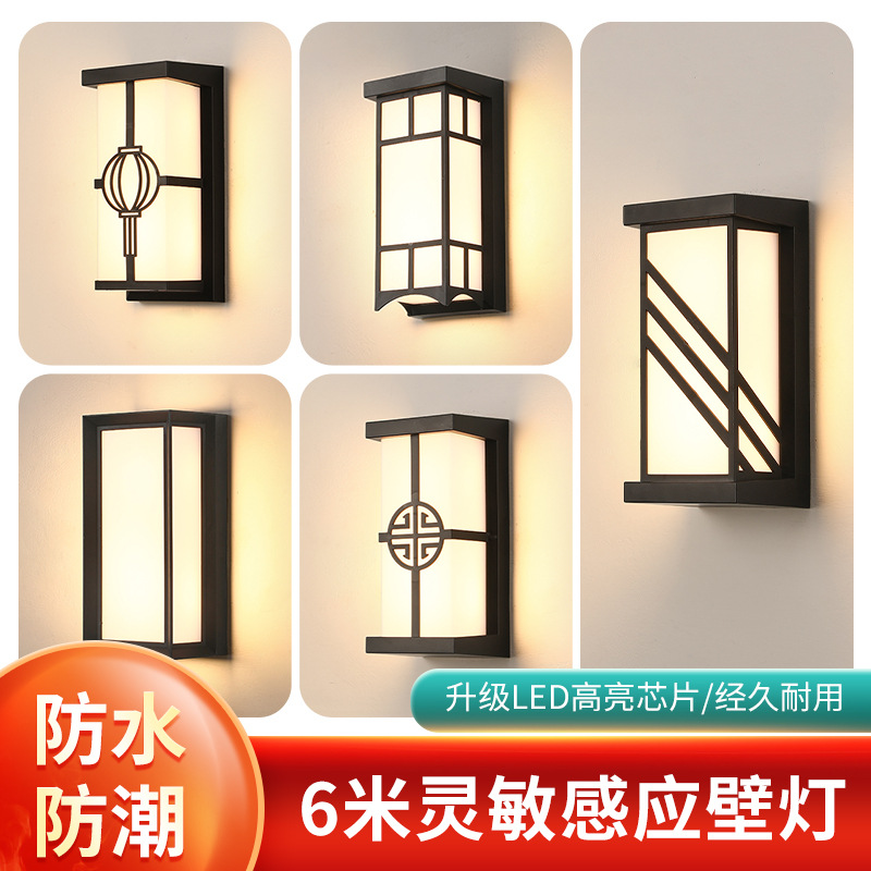 现代中式防水户外走廊阳台楼梯感应壁灯明装墙上室外防水感应