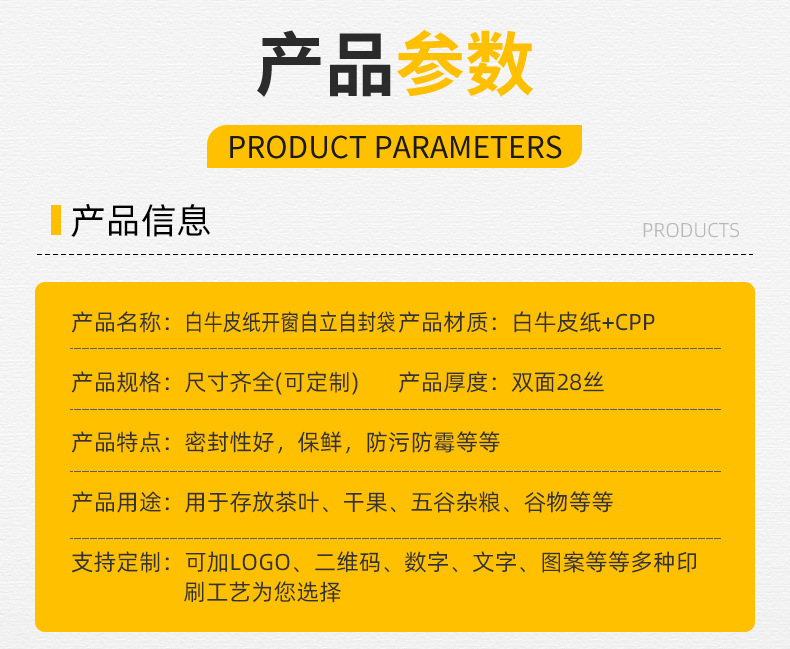 現物白色クラフト紙自封袋高清開窓厚手茶葉ナッツ食品包装袋ドライフルーツ密封袋