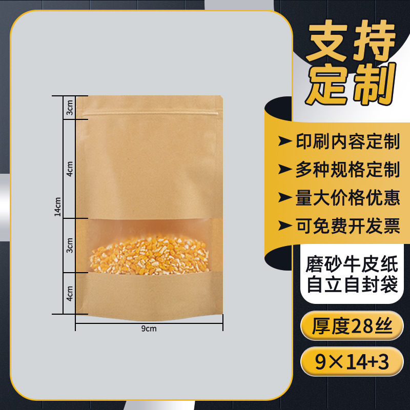 クラフト紙袋開窓フロスト自立袋茶葉食品包装袋ドライフルーツシールクラフト紙自封袋カスタム