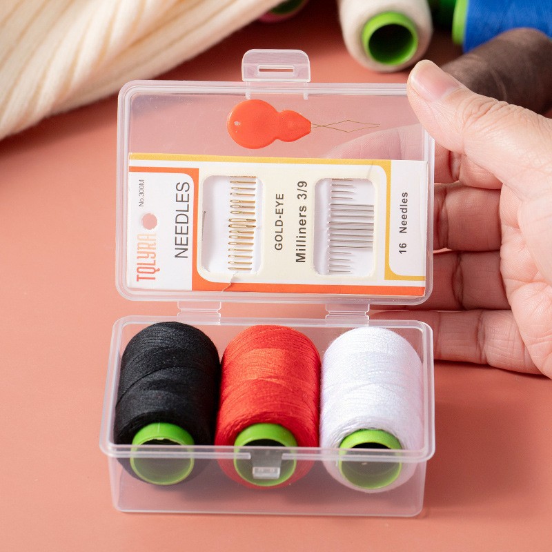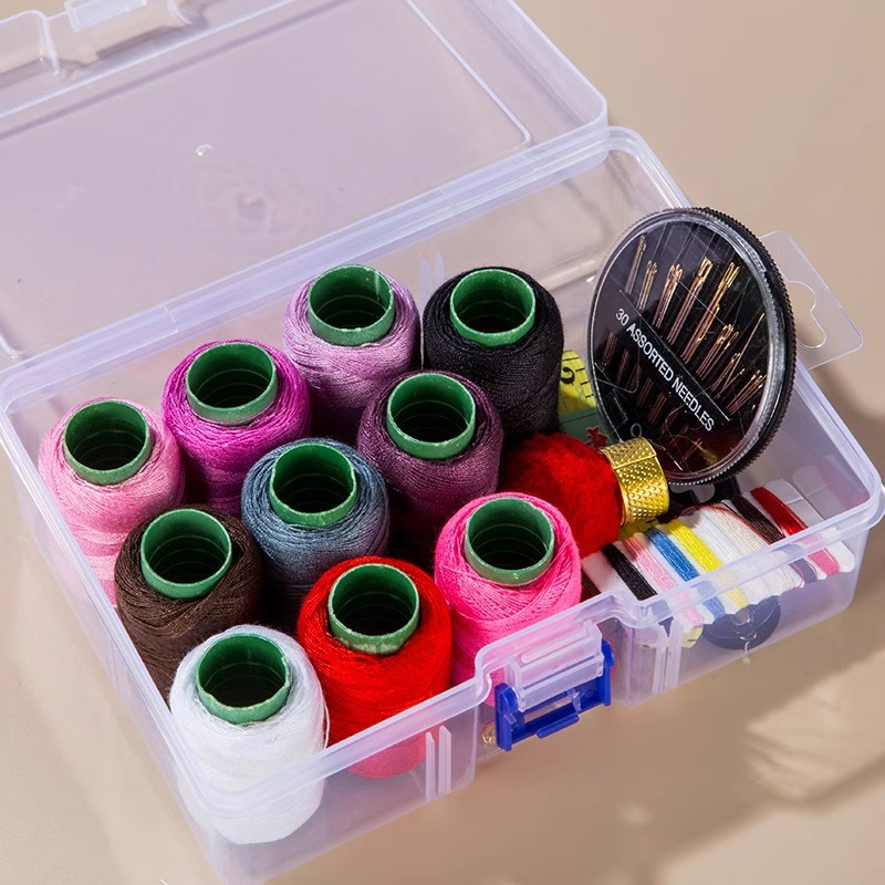 配件列表 1十色线,2黑色针盘,3别针,4纱剪,5穿针器,6顶针,7米尺,8插针求,9两色纽扣,10八色小线,11收纳盒