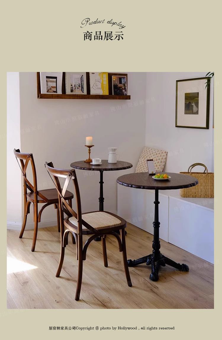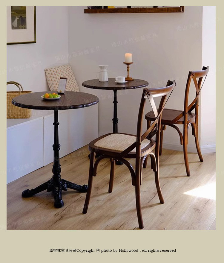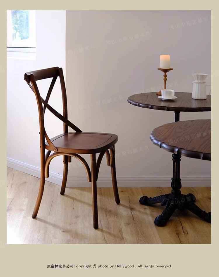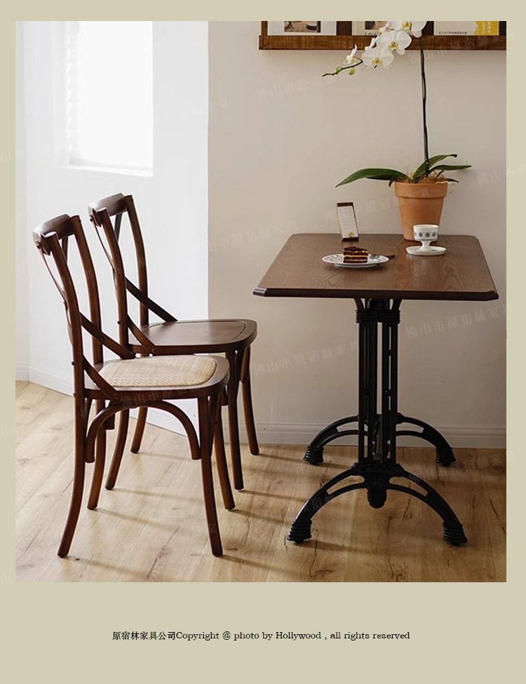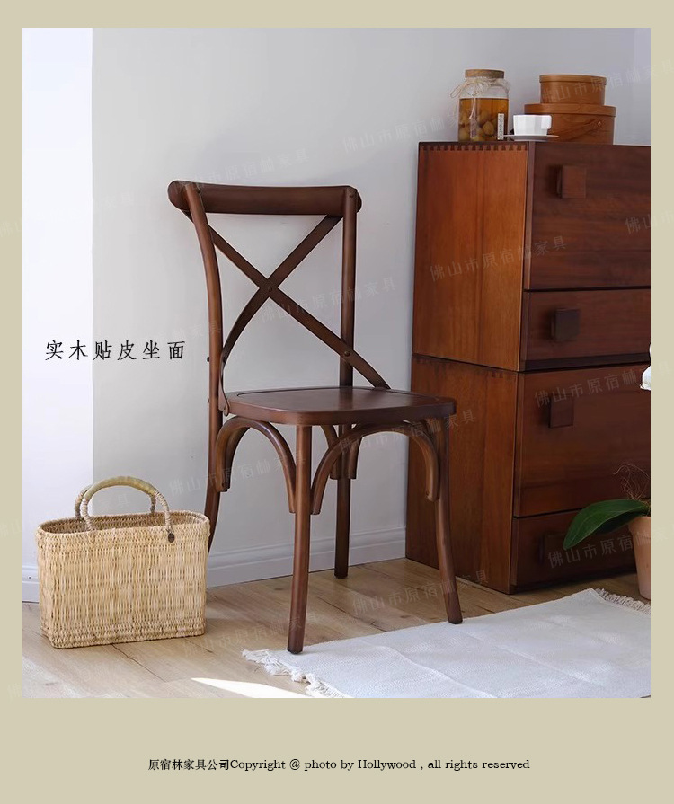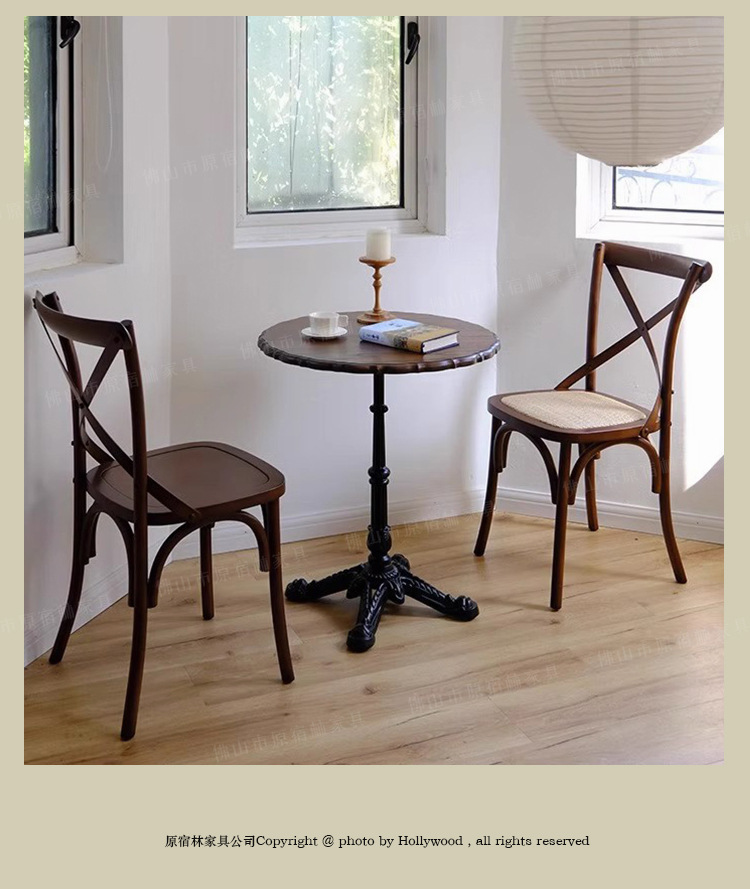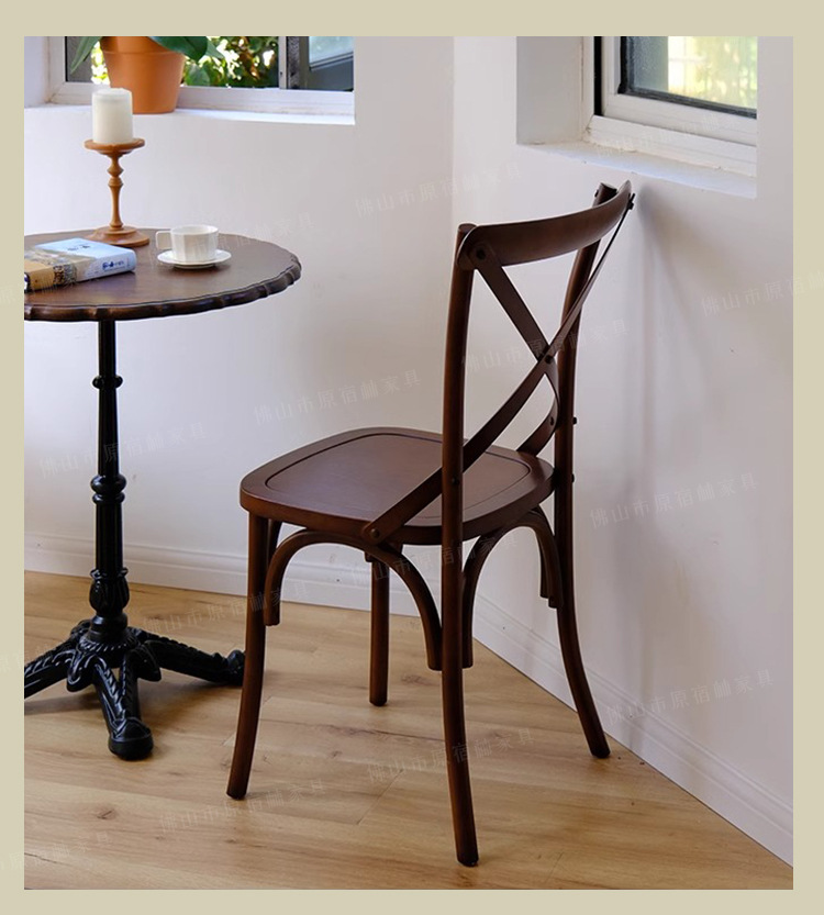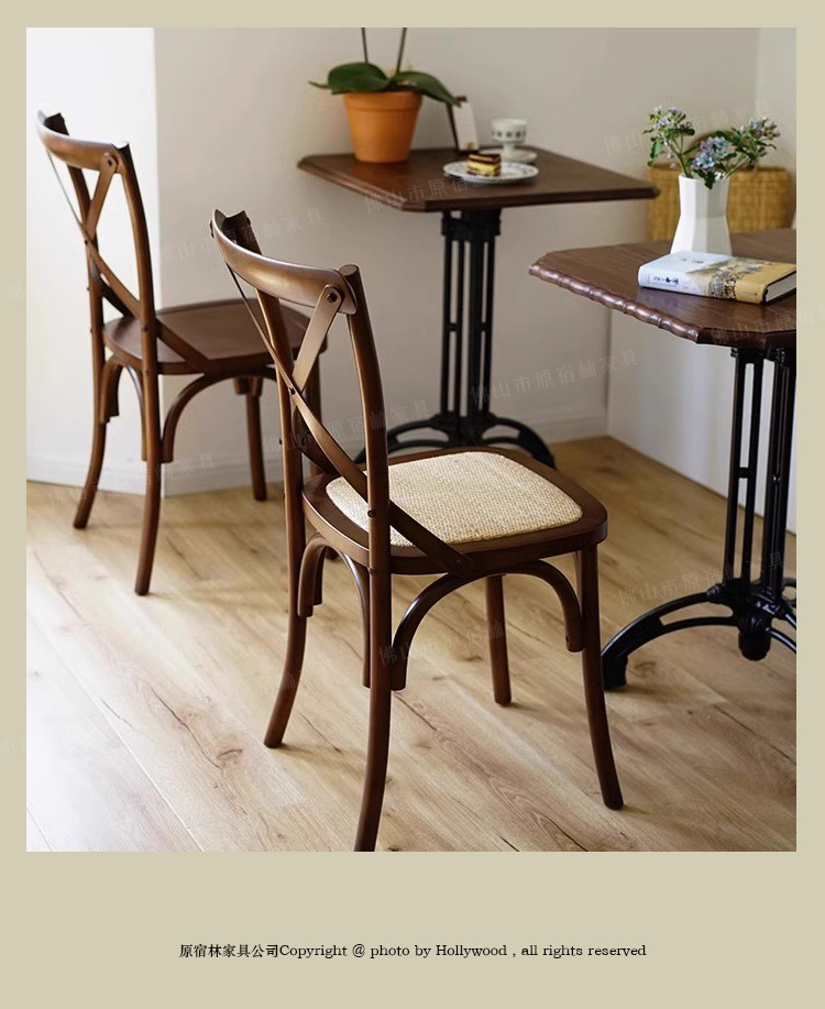 レトロな無垢材のダイニングチェア、コーヒーショップ、ミルクティーショップ、中古代のクルミ色の椅子、木製レストランの背もたれ椅子、フランス